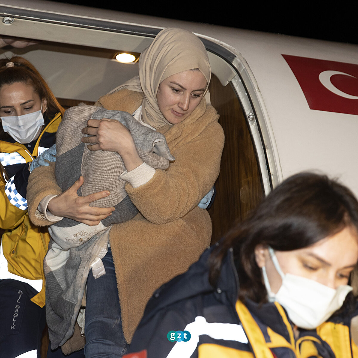 Bebekler Esenboğa Havaalanı'na inen uçaktan Aile ve Sosyal Hizmetler Bakanlığının bakıcı anneleri tarafından alınarak Etlik Şehir Hastanesi'ne nakledilmek üzere ambulanslara taşındı.