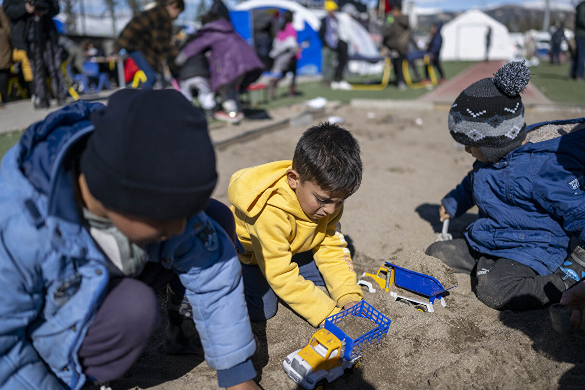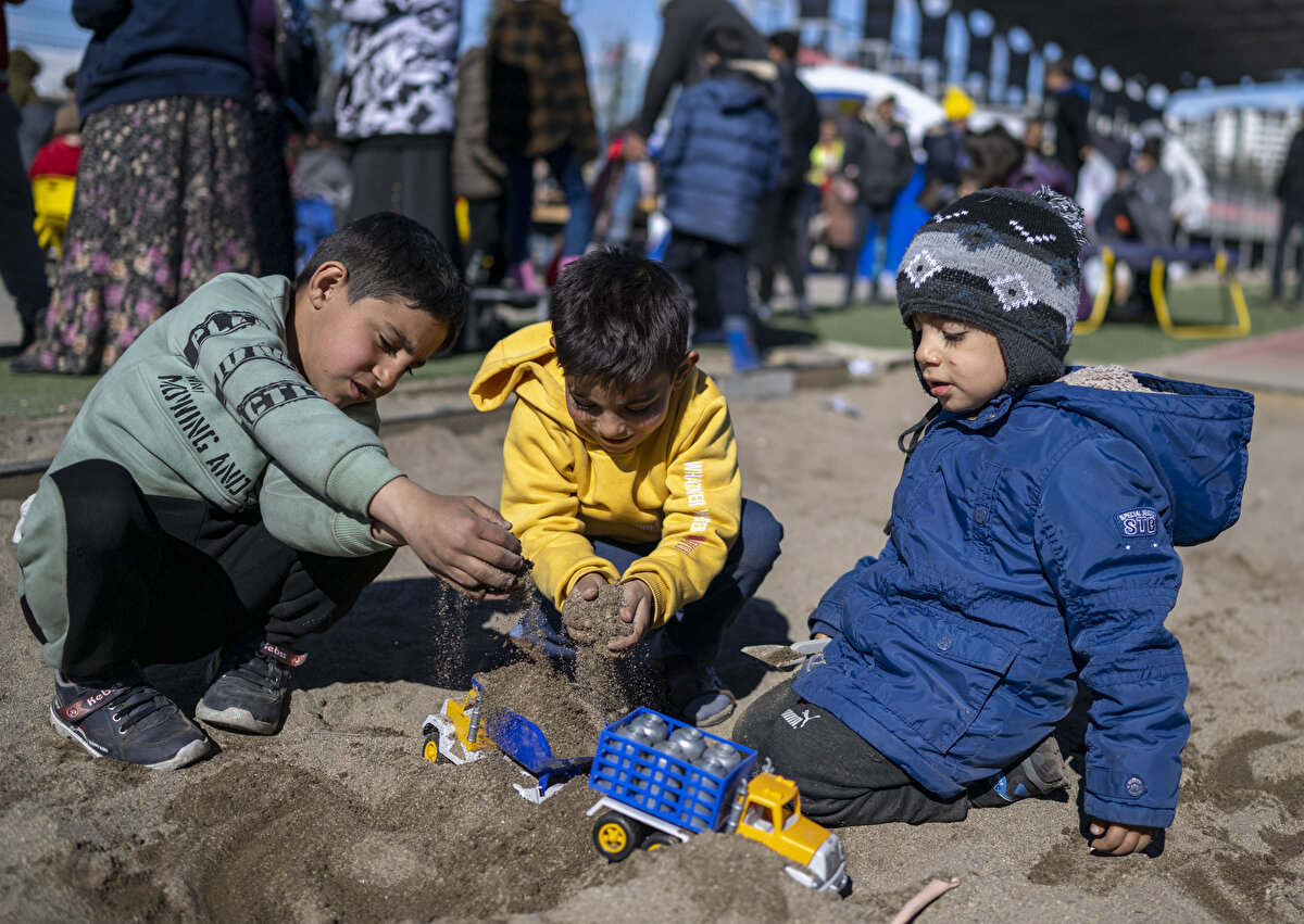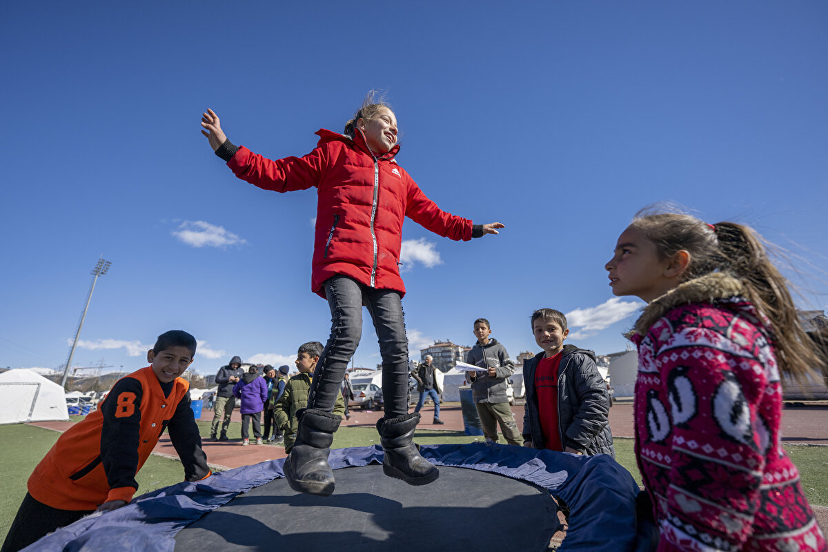 Kentte Sümerevler Atletizm Pisti`nde kurulan çadır kentte Milli Eğitim Bakanlığı koordinesinde asker ve polisler tarafından çocuklar için oyun alanı oluşturuldu.