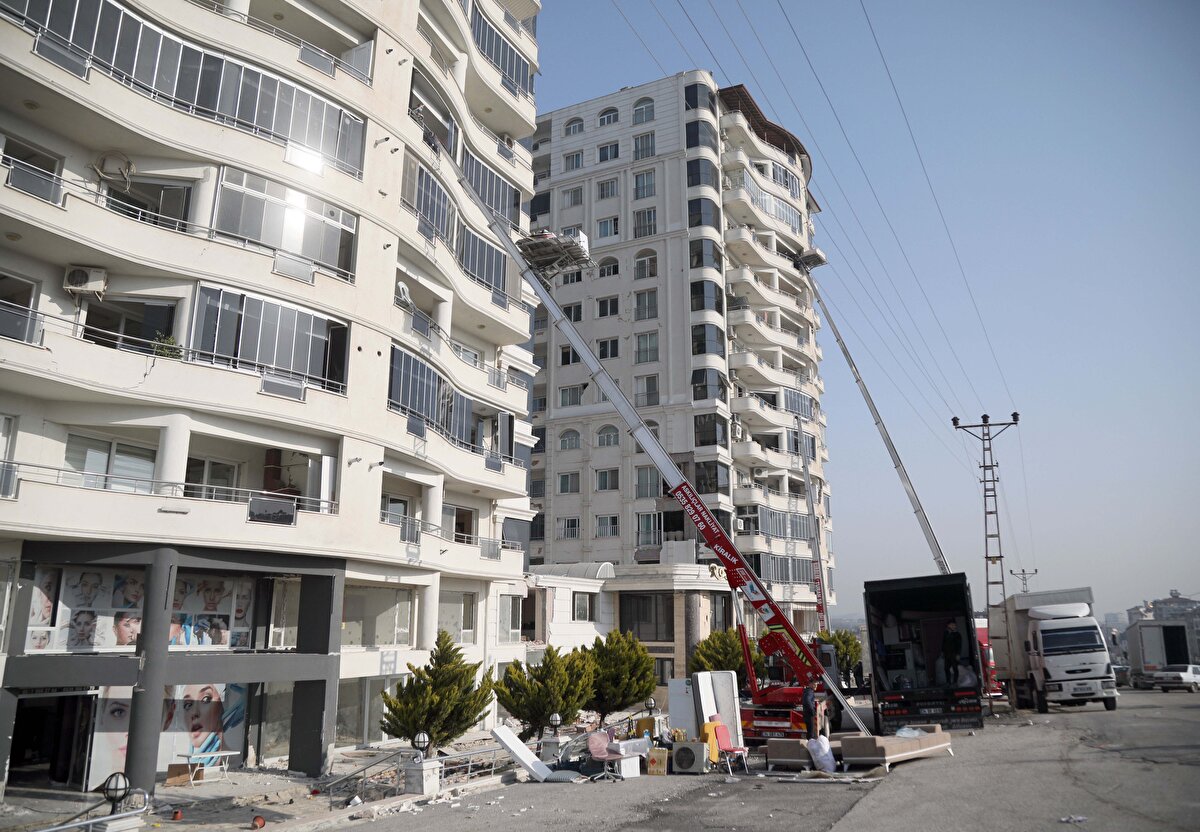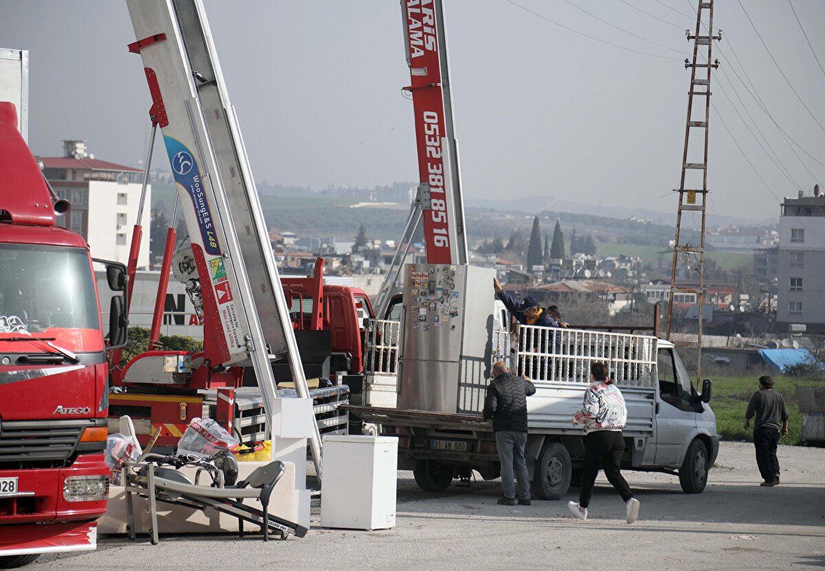 Depremin en çok etkilediği Hatay Antakya'da yaşayanlar, ağır, orta veya az hasarlı binalardaki eşyalarını, asansörlü eşya taşıma araçlarıyla kurtarmaya çalışıyor. Depremzedelerin eşya taşıma firmalarına yoğun talebi olduğu belirtildi.