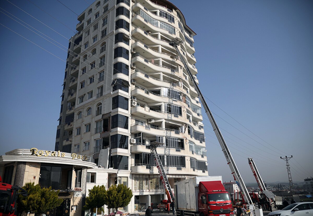 Antakya'nın sokak veya caddelerinde, olası artçı sarsıntıda yıkım tehlikesi bulunan birçok binada, yasak olmasına rağmen eşya taşıma işlemi sürüyor. 14'er katlı toplamda 90 daire ve biri ağır hasarlı 2 bloktan oluşan Royals Park adlı sitede, aynı anda 5 nakliye firması günün erken saatlerinden itibaren, evlerden eşyaları aldı.