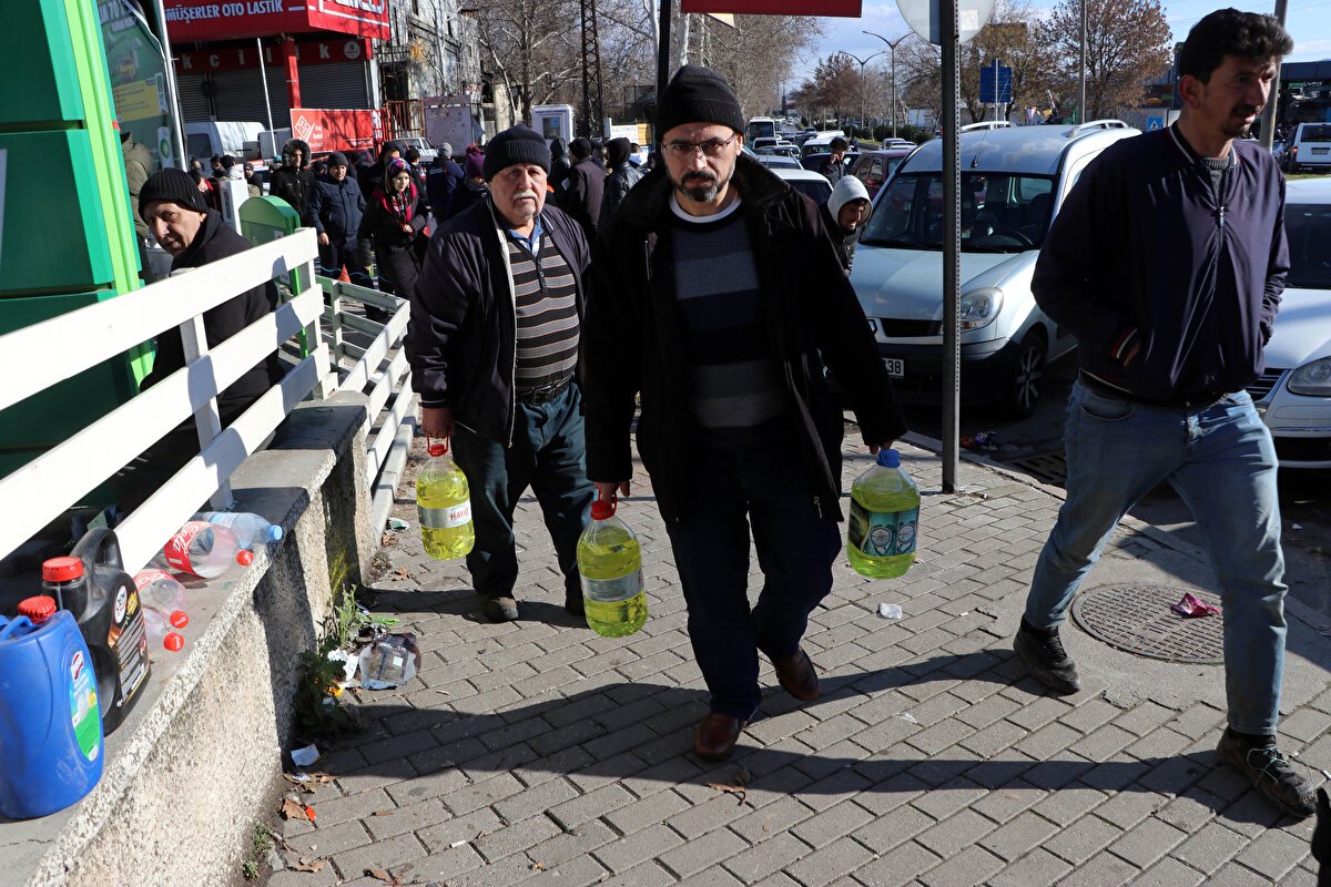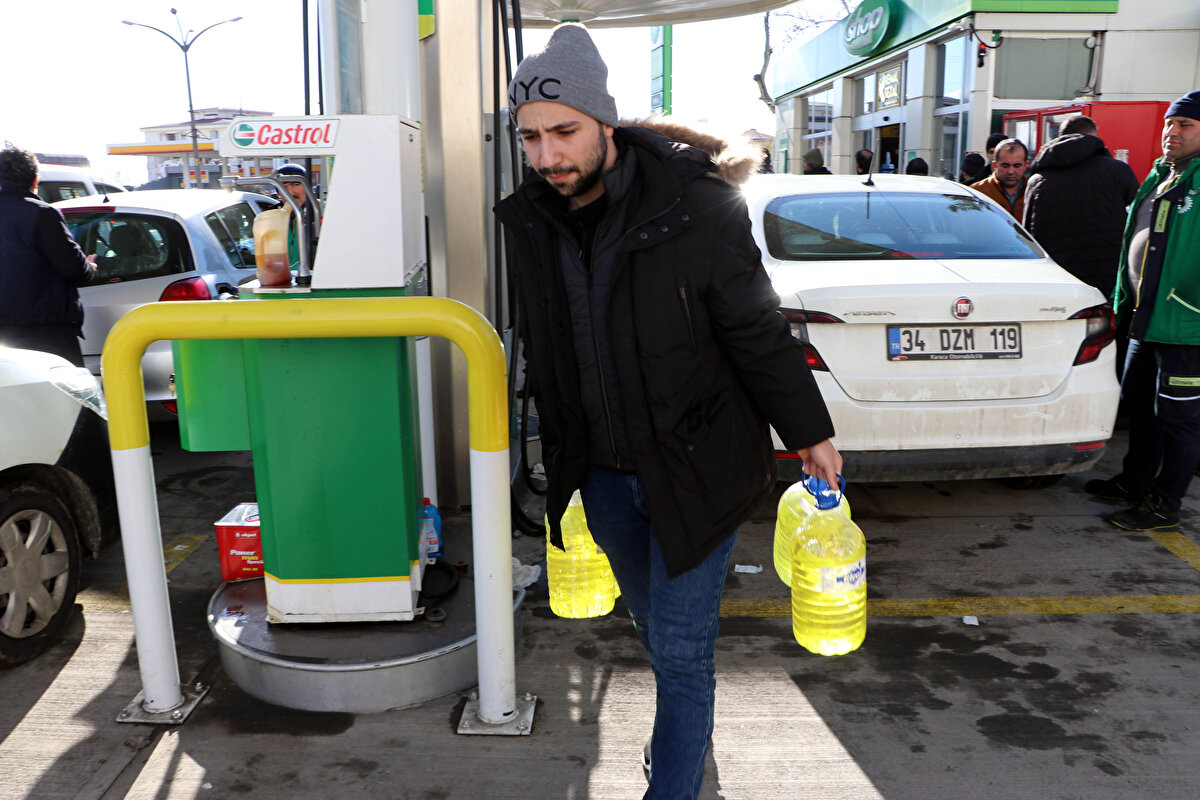 Vatandaşlar, araçlarını evleri gibi kullandığı için akaryakıt tüketimi de arttı. Ancak akaryakıt istasyonları yoğun talebi karşılamakta güçlük yaşıyor. Akaryakıt istasyonlarının önünde araçlarıyla gelenler uzun kuyruk oluşturuyor. Birçok kişi ise bidonlarla gelerek kuyruğa girip bekledikten sonra aldıkları yakıtlarını araçlarının deposuna dolduruyor.
