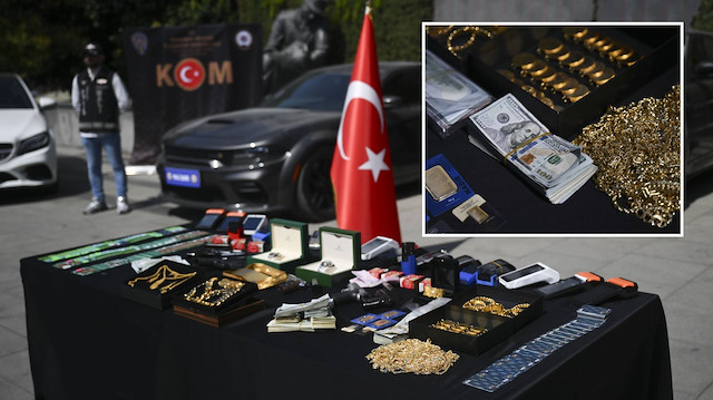 Öte yandan, şüphelilere yönelik aramalarda ele geçirilen ziynet eşyası, lüks saatler ve paralar İstanbul Emniyet Müdürlüğünün Vatan Caddesi'ndeki yerleşkesinde sergilendi.