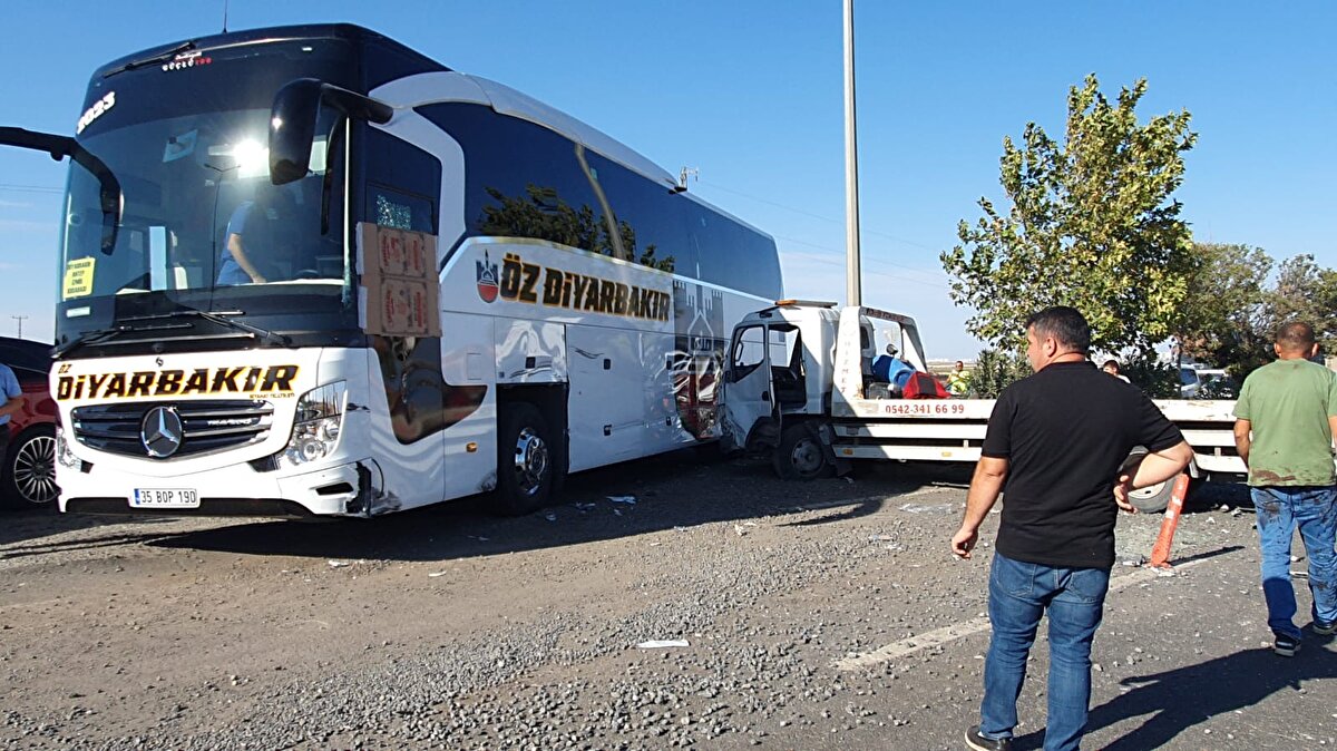 Çarpışmanın etkisiyle savrulan çekici, Diyarbakır- İzmir seferini yapan A.D. yönetimindeki 35 BOP 190 plakalı yolcu otobüsüne çarptı.