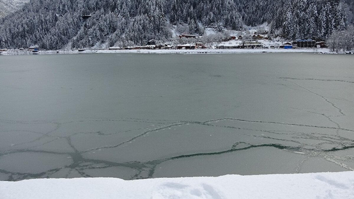 Türkiye'nin en önemli turizm merkezleri arasında yer alan Trabzon'un Çaykara ilçesi sınırları içindeki Uzungöl, Doğu Karadeniz Bölgesi'nde etkili olan soğuklar ve kar yağışı sonrası kısmen dondu.