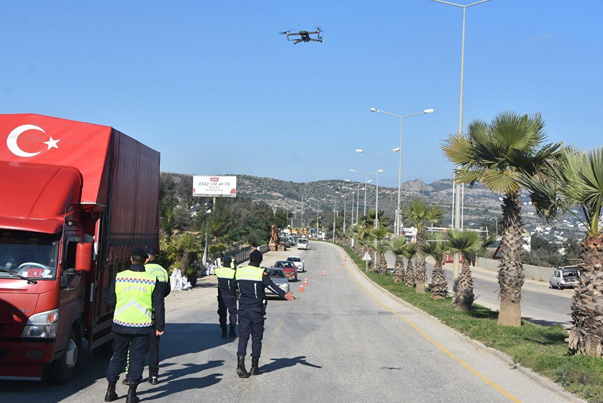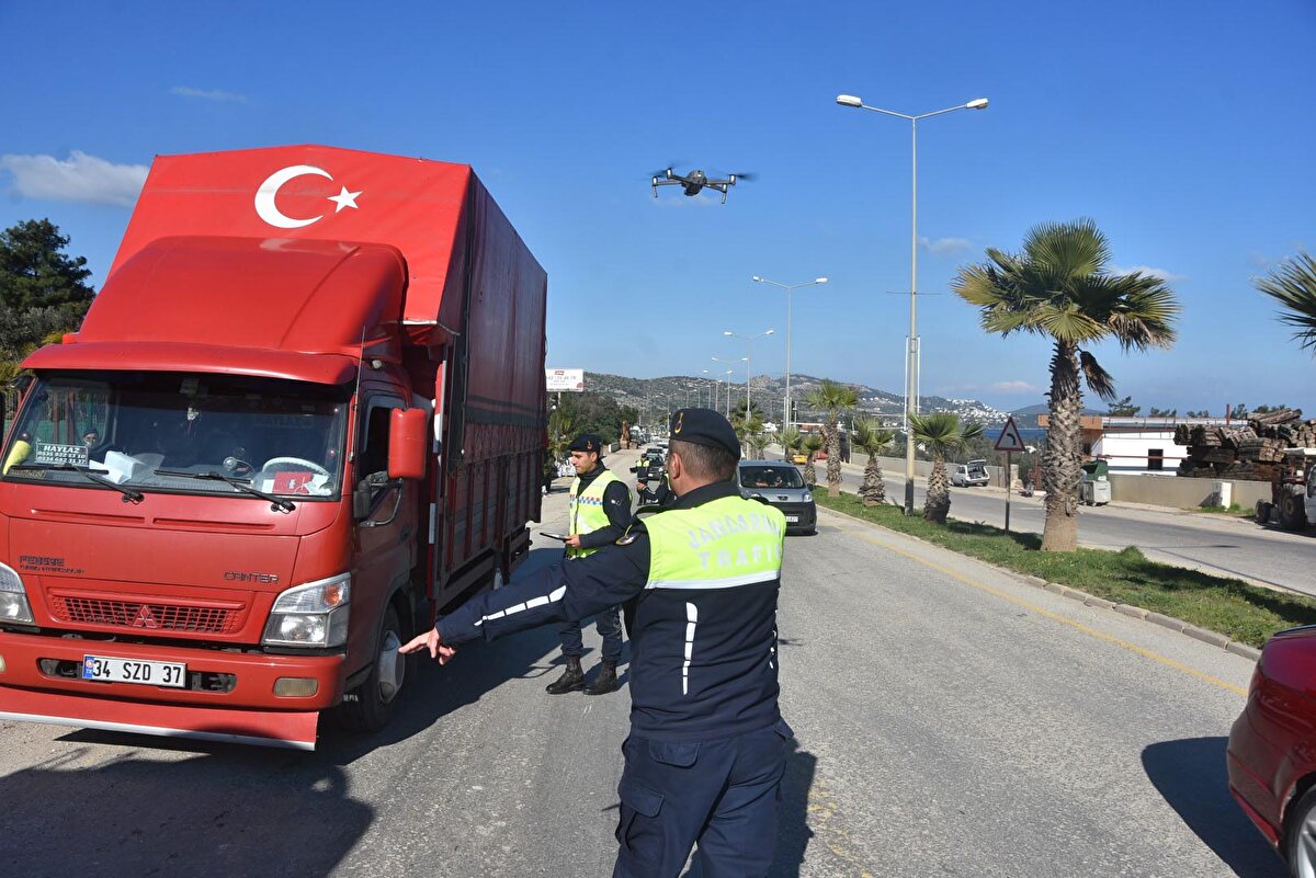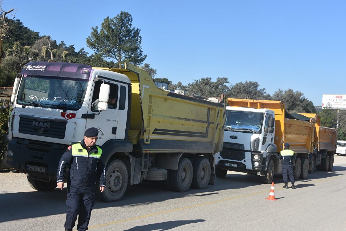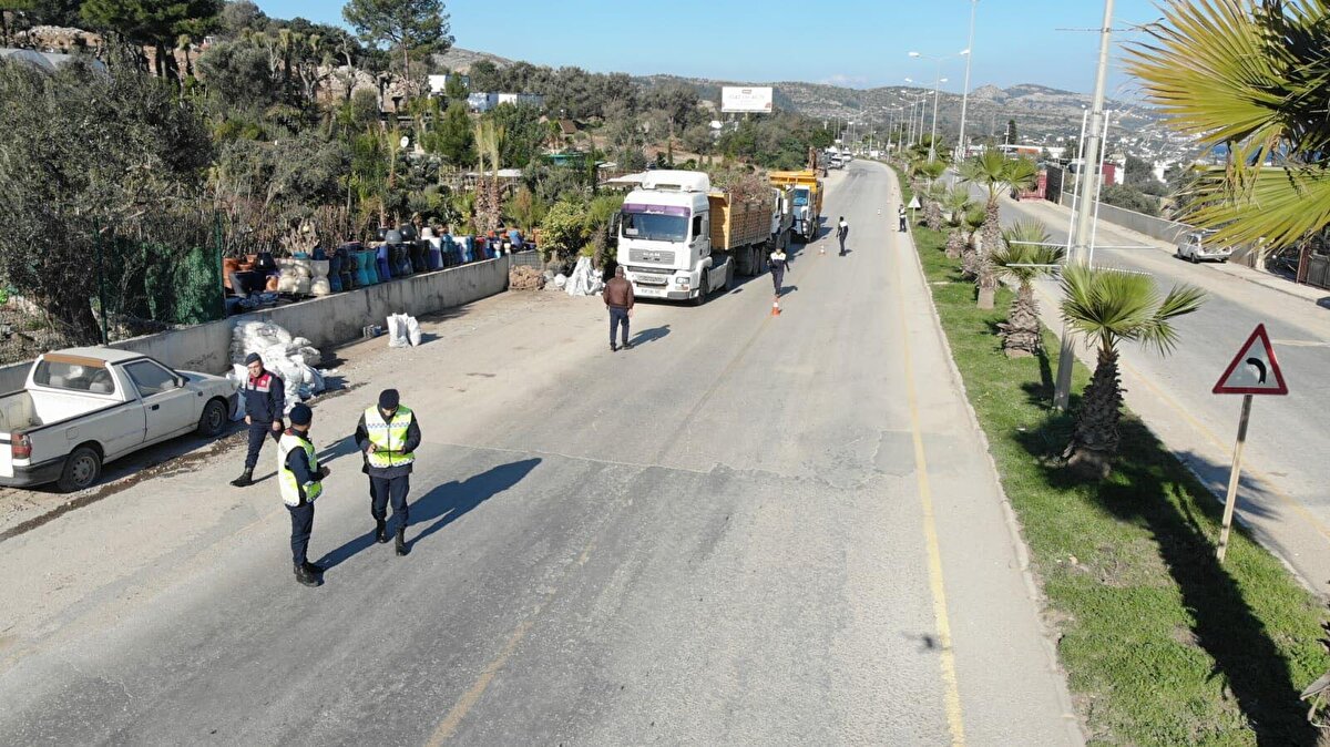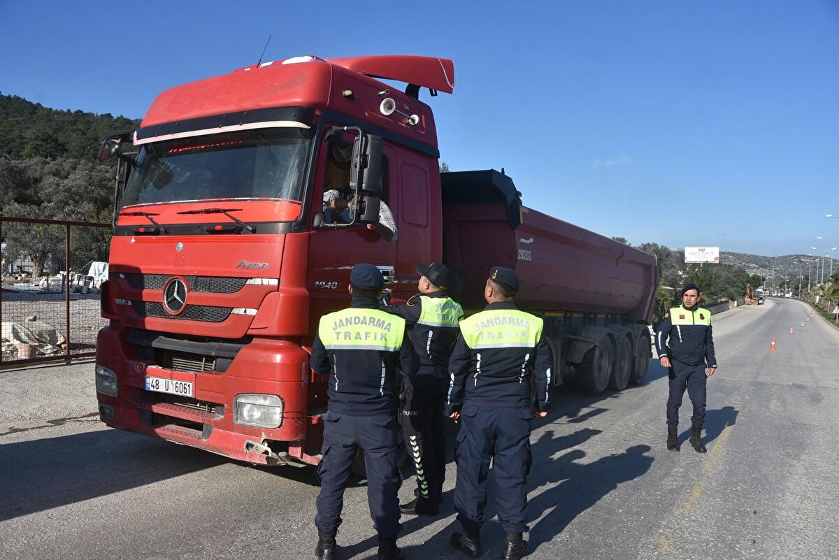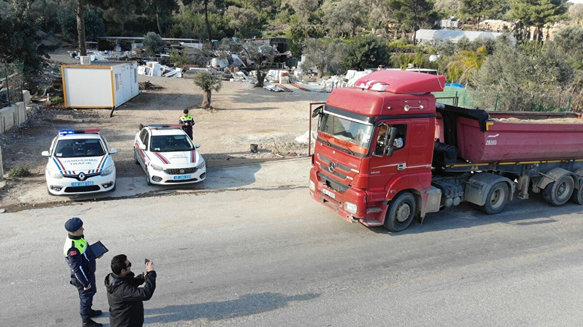 İnşaat yasağının 15 Ekim'de sona ermesiyle yarımada genelinde hem hafriyat kamyonlarına hem de beton mikserlerine yönelik denetimler sıklaştırıldı. Bodrum İlçe Jandarma Komutanlığı'na bağlı trafik ve asayiş ekipleri, Gölköy Mahallesi'nde dron destekli uygulama yaptı. Hafriyat kamyonlarında tonaj, branda gibi ihlaller olup olmadığı kontrol edildi.