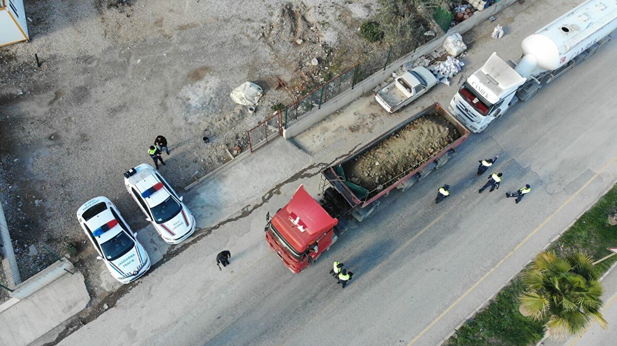 Dronlarla kontrol edildiler: Hafriyat kamyonlarına 1 milyon lira ceza kesildi