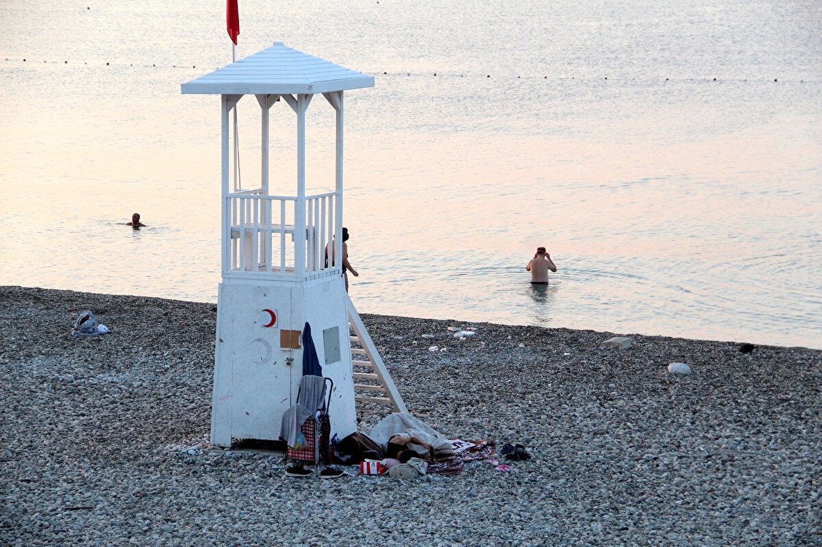 Antalya'da sıcak ve nemli havadan etkilenen vatandaşlar dünyaca ünlü Konyaaltı Sahili'nde uyudu. Sabahın ilk ışıklarında dahi sahildeki yoğunluk dikkat çekti.