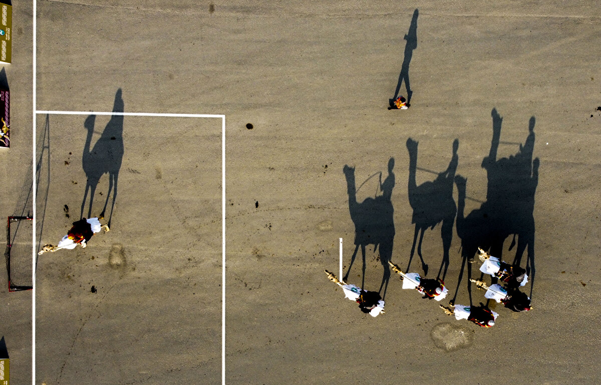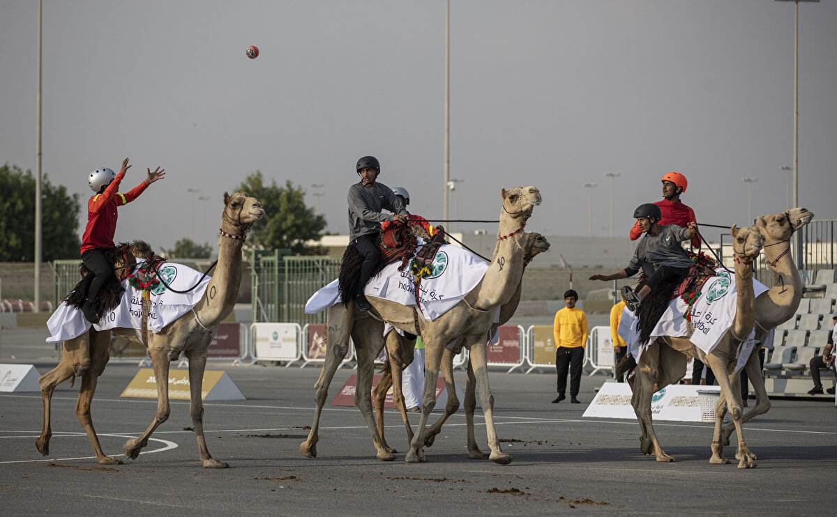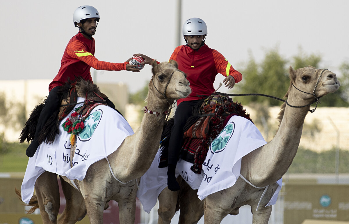 Dünyada bir ilk: Katar'da develer üzerinde hentbol oynandı