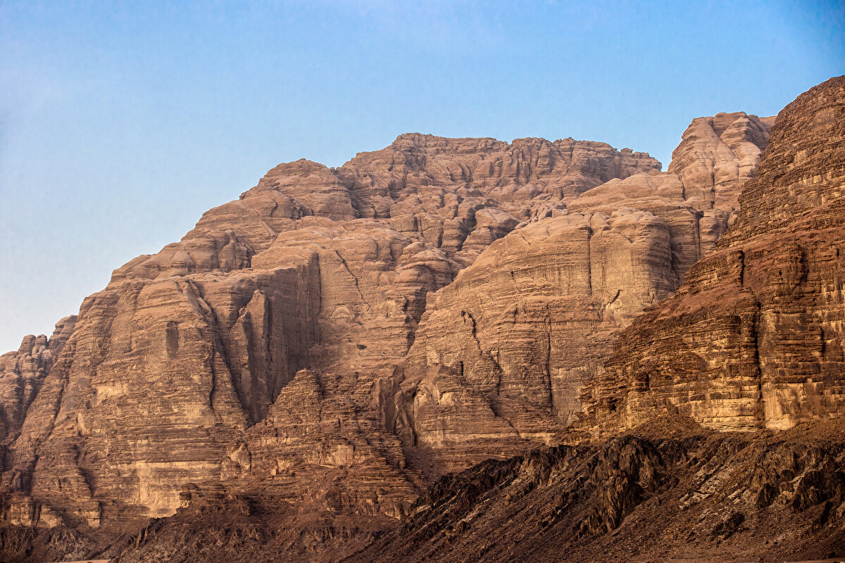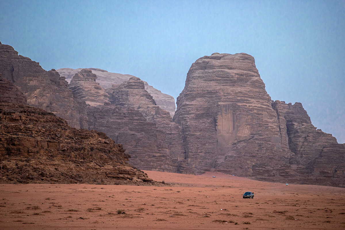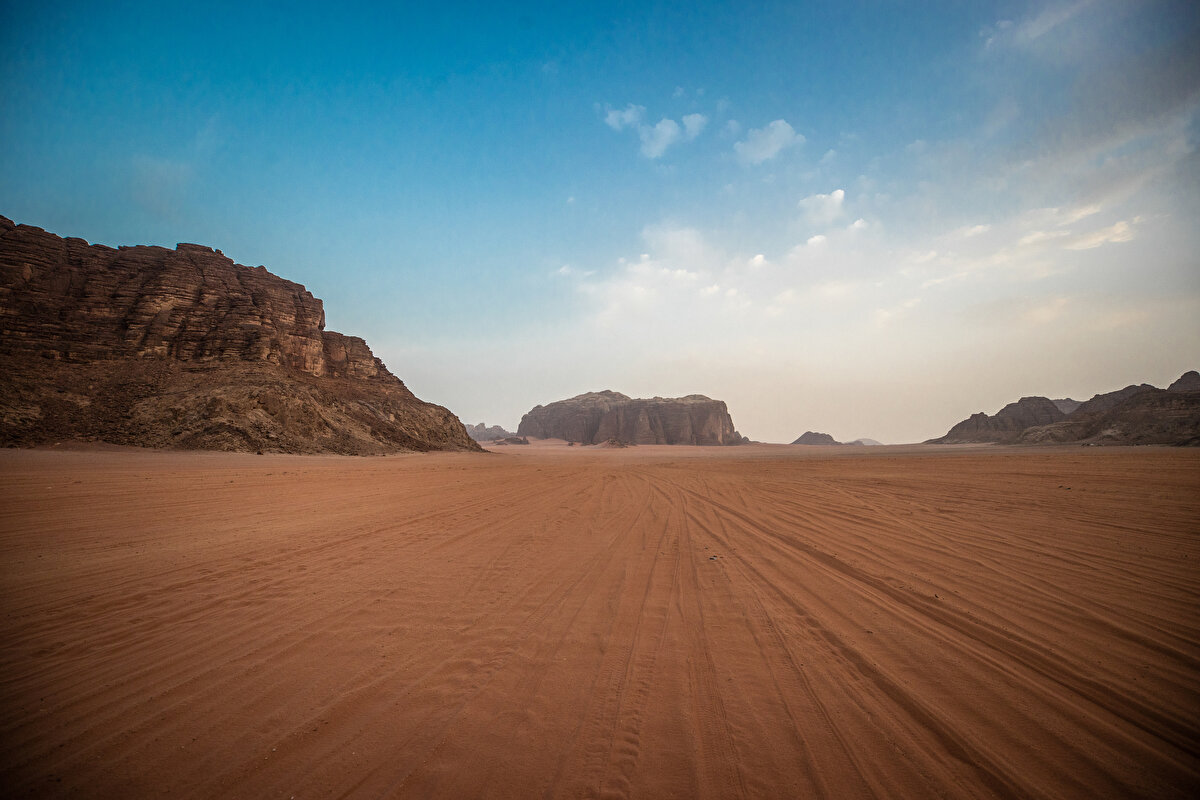 Ürdün`ün en büyük vadisi olan Rum Vadisi, kumtaşı ve granit kayaların içinde kızıl bir görüntüye sahip.