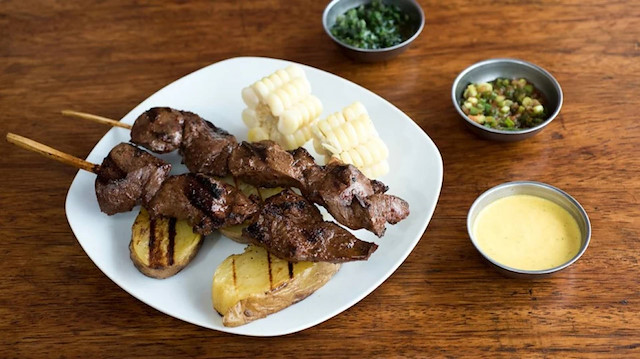 Peru’ya özgü bu sokak lezzeti, dana yüreğinin sarımsak, kırmızı şarap sirkesi, aji panca biberi ve baharatlarla marine edilip şişe geçirilerek ızgarada pişirilmesiyle hazırlanır. Geleneksel ve cesur bir tat sunar.