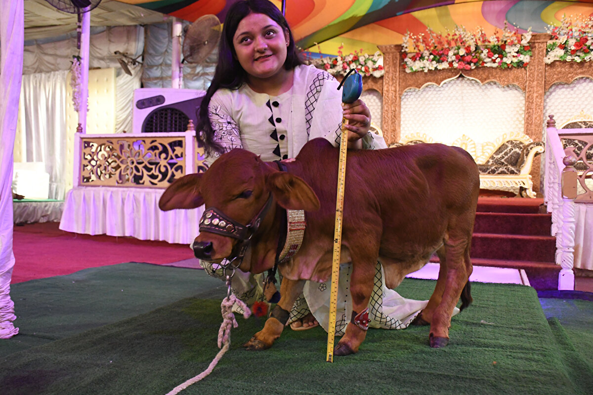 Pakistan'ın Karaçi şehrinde Queen adı verilen 58 cm boyundaki dünyanın en küçük ineğinin Guinness Dünya Rekorlar Kitabı'nda yer alması için sahibi tarafından başvuruda bulunuldu.