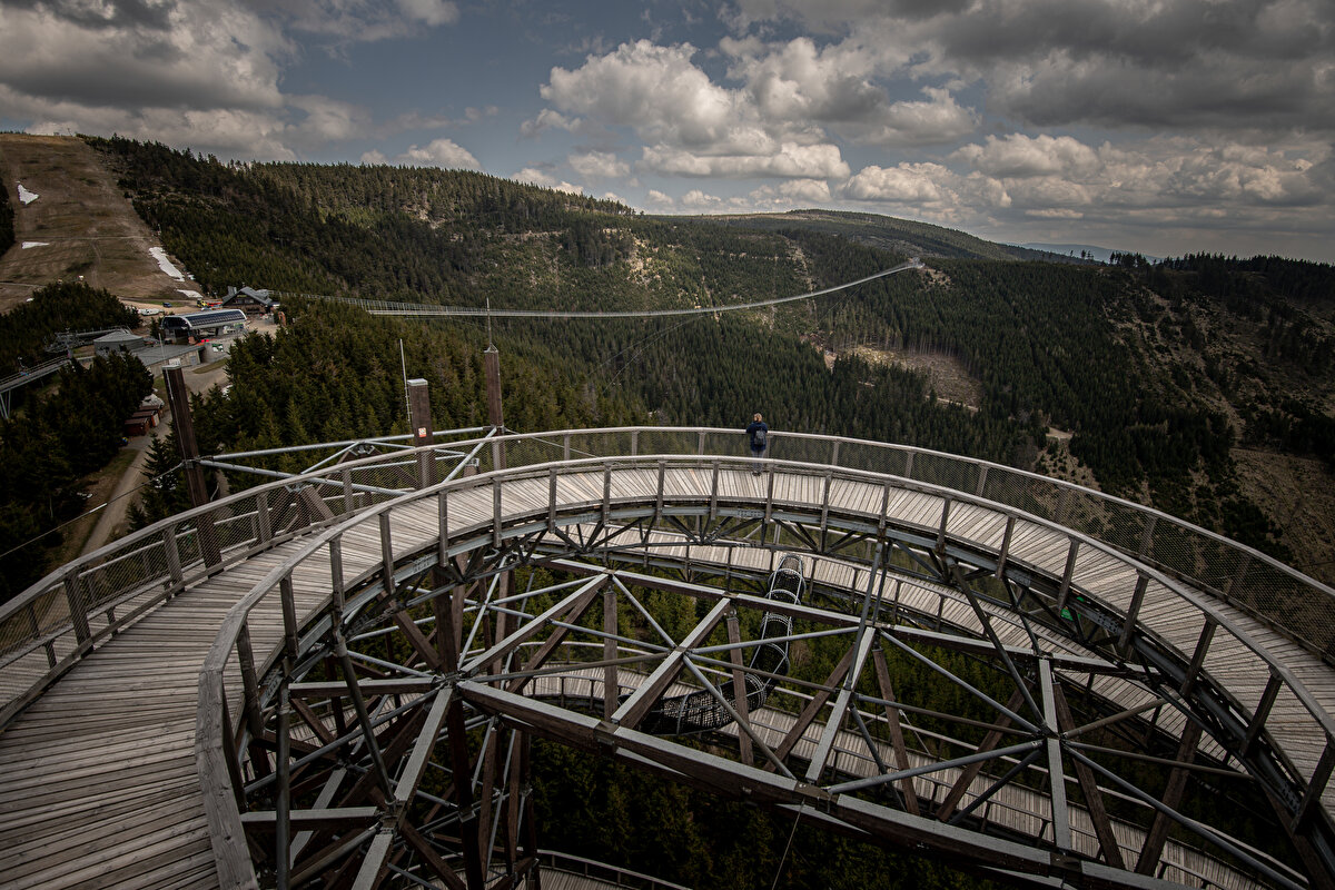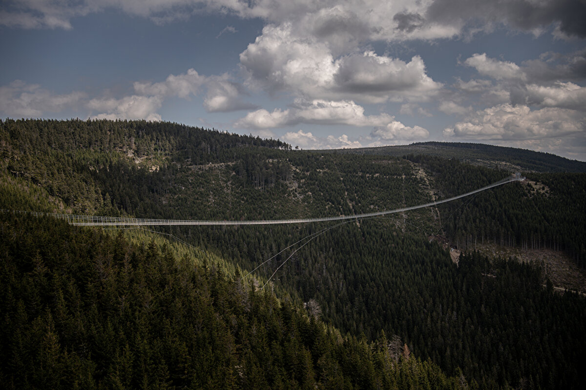 Çekya`nın Dolni Morava bölgesinde inşa edilen ve uzunluğu 721 metre, yerden yüksekliği 95 metre, dikme uzunluğu 11.4 metre ve ana halat çapı ise 76 mm olan köprü, yükseklik korkusu olmayan doğaseverlerin ilgisini çekiyor.