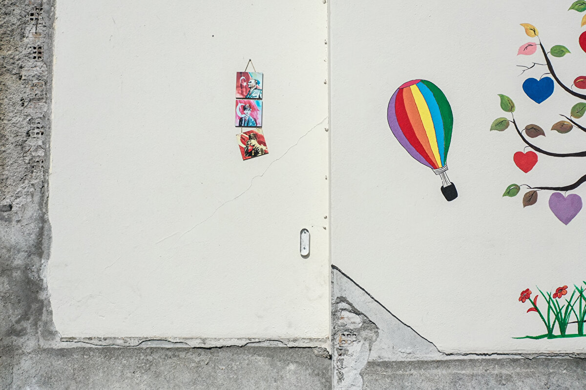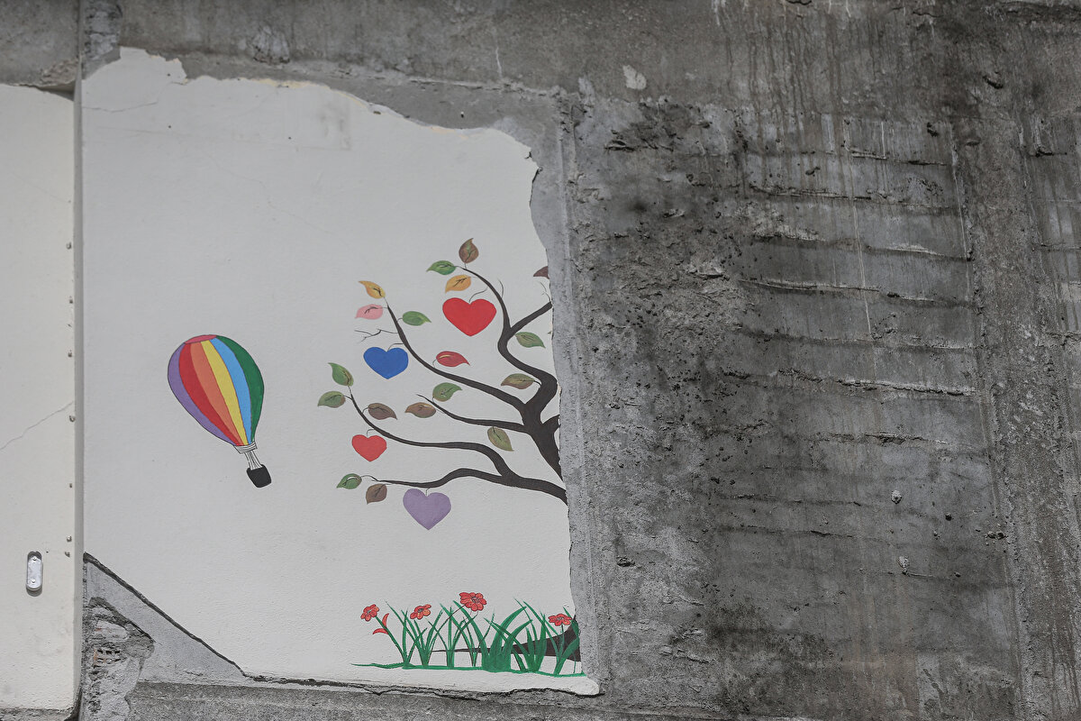 "Duvar görünümlü" dış cephede asılı kalan Atatürk resimleri, fotoğraflar ve televizyon ile duvara çizilen resimler, afetin boyutlarını göstermesinin yanı sıra yaşanan kayıplarda ihmallerin etkisini düşündürdü.