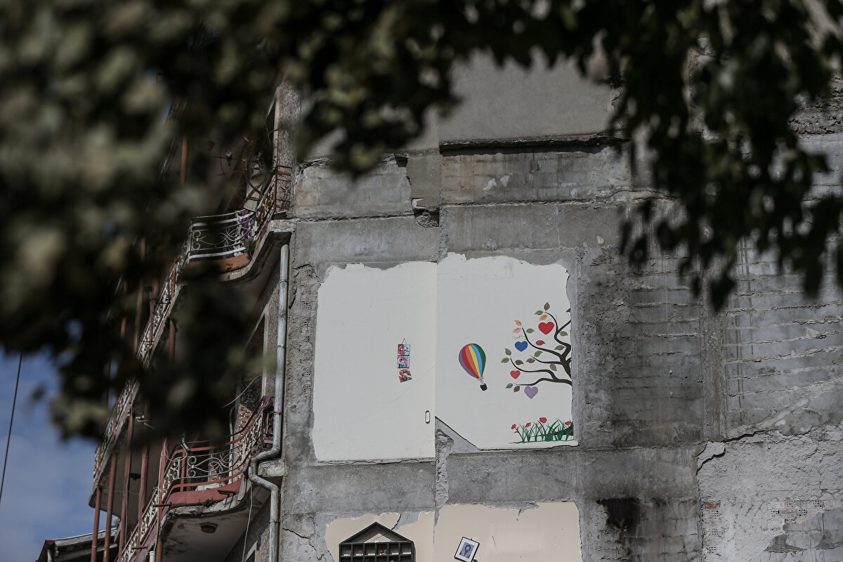 Kızık, sokaklarda gezerken yıkılan 5 katlı apartmanın dikkatini çektiğini aktararak, "Binanın yan duvarını yapmamışlar. Televizyon ve bir miniğimizin rafı duvarda takılı kalmış. Tabii bizi de duygulandırdı." dedi.