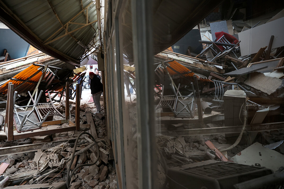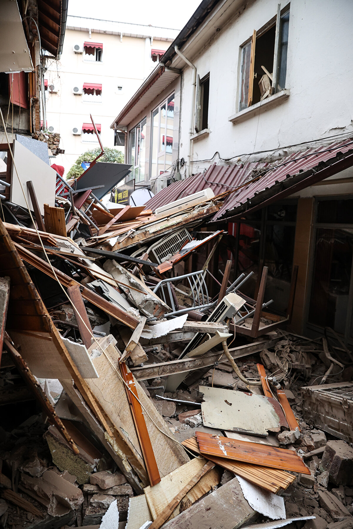 Düzce'nin Gölyaka ilçesinde meydana gelen 5,9 büyüklüğündeki deprem nedeniyle kent merkezinde bazı yerlerde hasar meydana geldi.