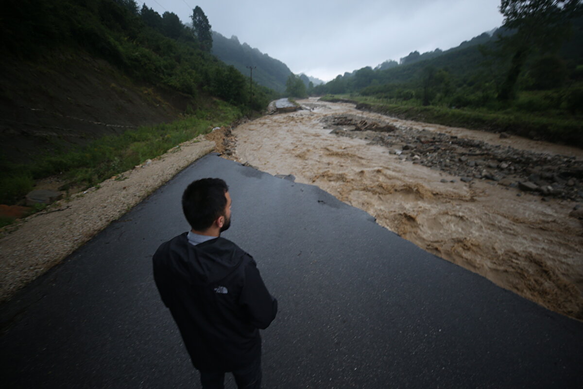 Düzce'de sel felaketi: Derenin taşması nedeniyle yol çöktü