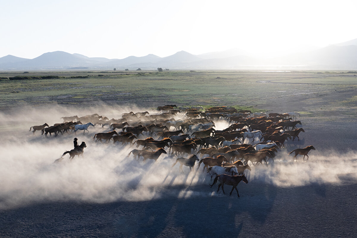 Kayseri'de, Erciyes Dağı'nın eteklerinde yaşayan yılkı atları, Hörmetçi meralarında sürüler halinde koşarken doğaya ayrı güzellik katıyor. Hörmetçi ve Sultan Sazlığı ile Soysallı Mahallesi'nde görülen yılkı atları, doğaseverlerin yanı sıra fotoğraf tutkunlarının da ilgisini çekiyor.