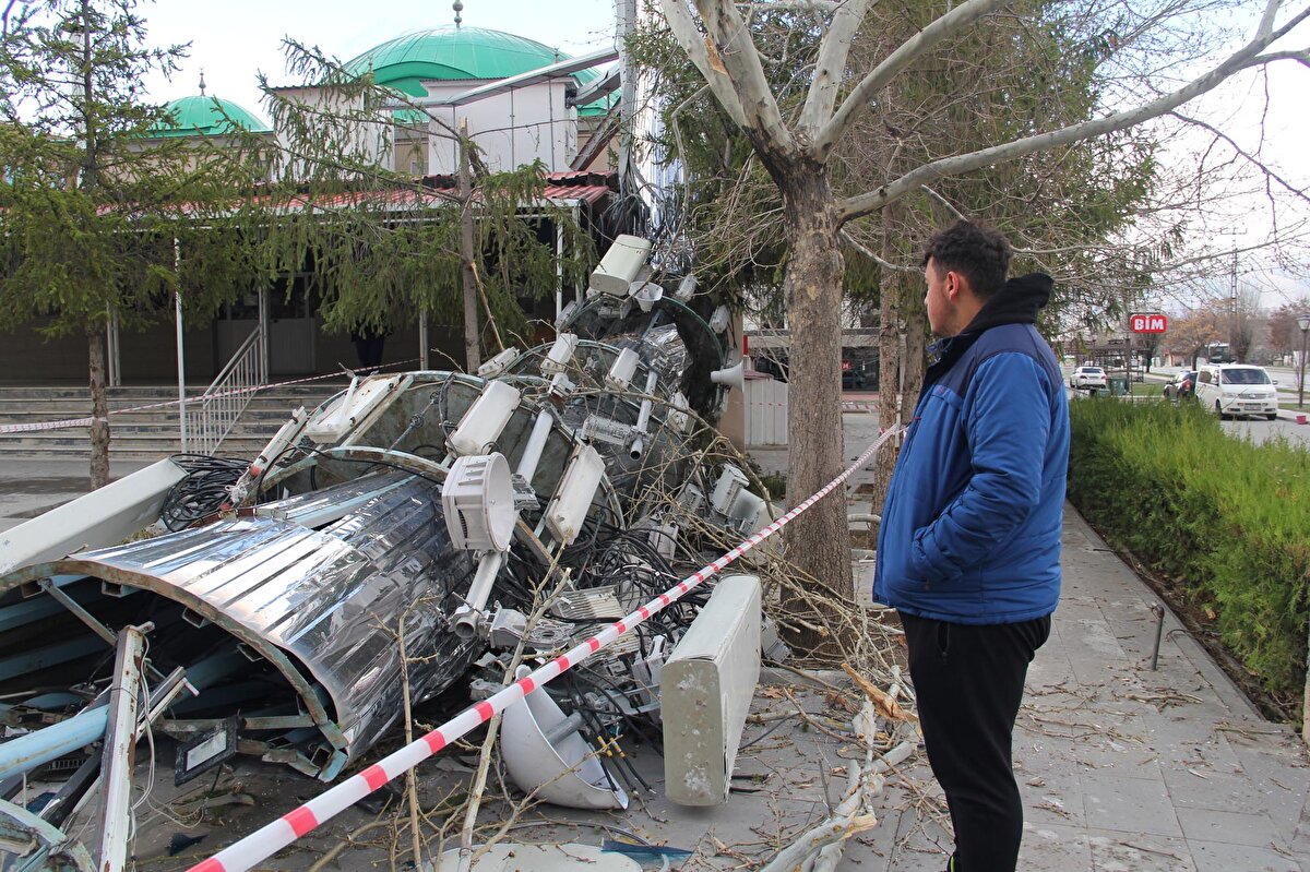 Erzincan'da sabah saatlerinde etkili olan kuvvetli rüzgar sırasında bir caminin minaresini yıkıldı, bazı binaların çatısı uçtu. Bir okulun çatısı, park halindeki otomobilin üzerine düştü.