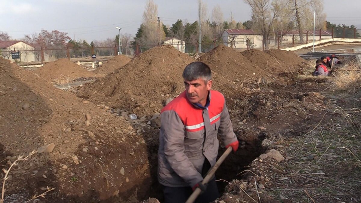 Erzurum'da mezarlıkta kış hazırlığı: Toprak donmadan mezarlar kazılıyor