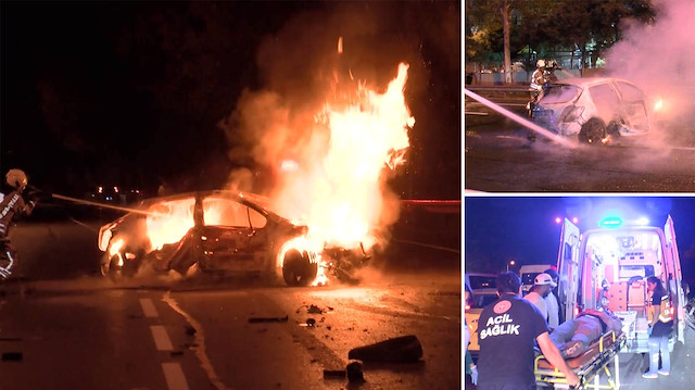 Kazada, araçta bulunan 5 kişi yola savrularak yaralanırken, otomobil ise alev aldı. Kazayı görüp duran diğer sürücüler ve çevredekiler bir yandan yardıma koşarken, diğer yandan durumu polis, itfaiye ve sağlık ekiplerine haber verdi.