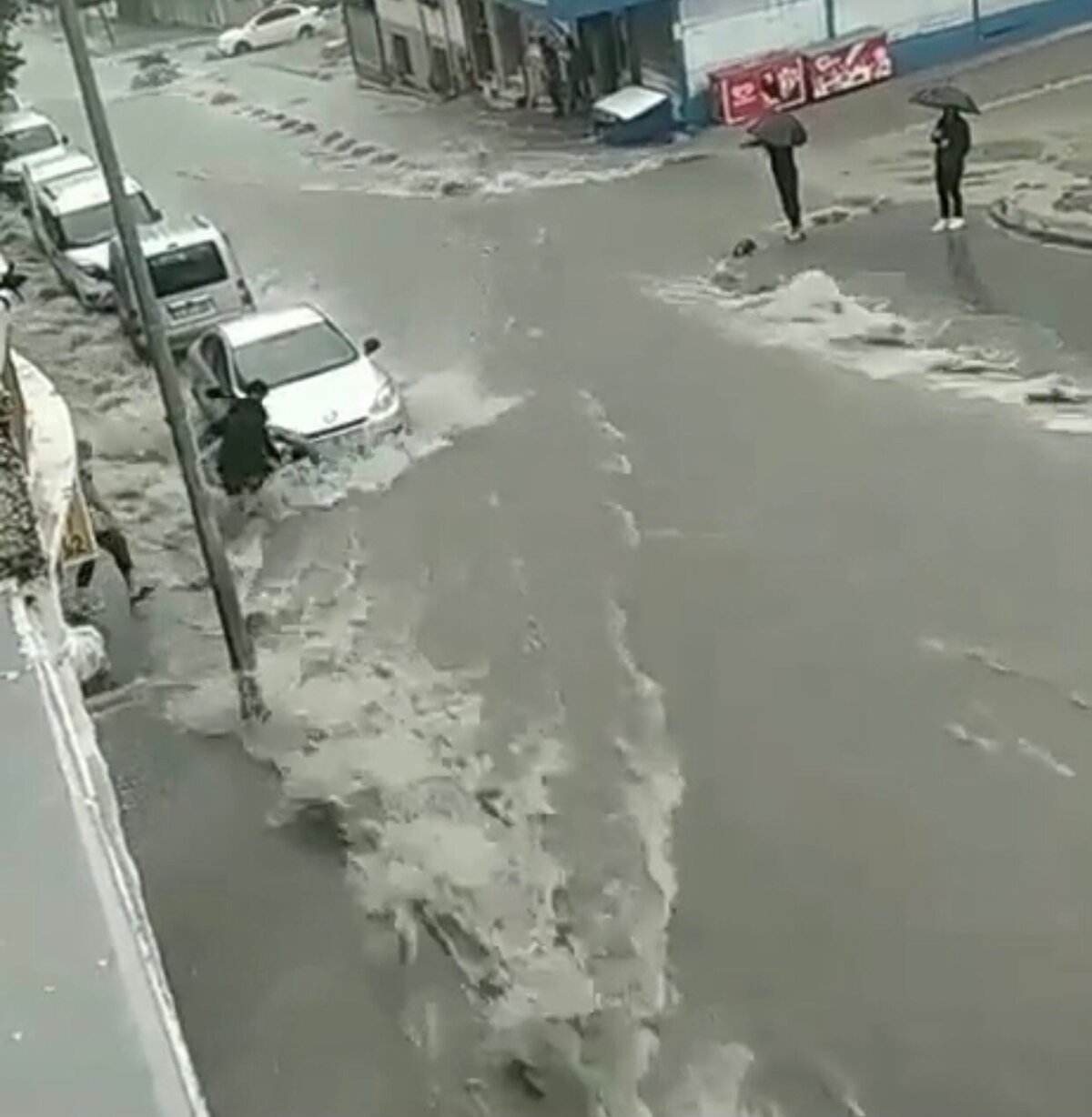O anlar ise cep telefonu kamerası ile kaydedildi. Görüntülerde, üç kişi yolun karşısına geçmeye çalışırken çocuk sel sularına kapılıyor.
