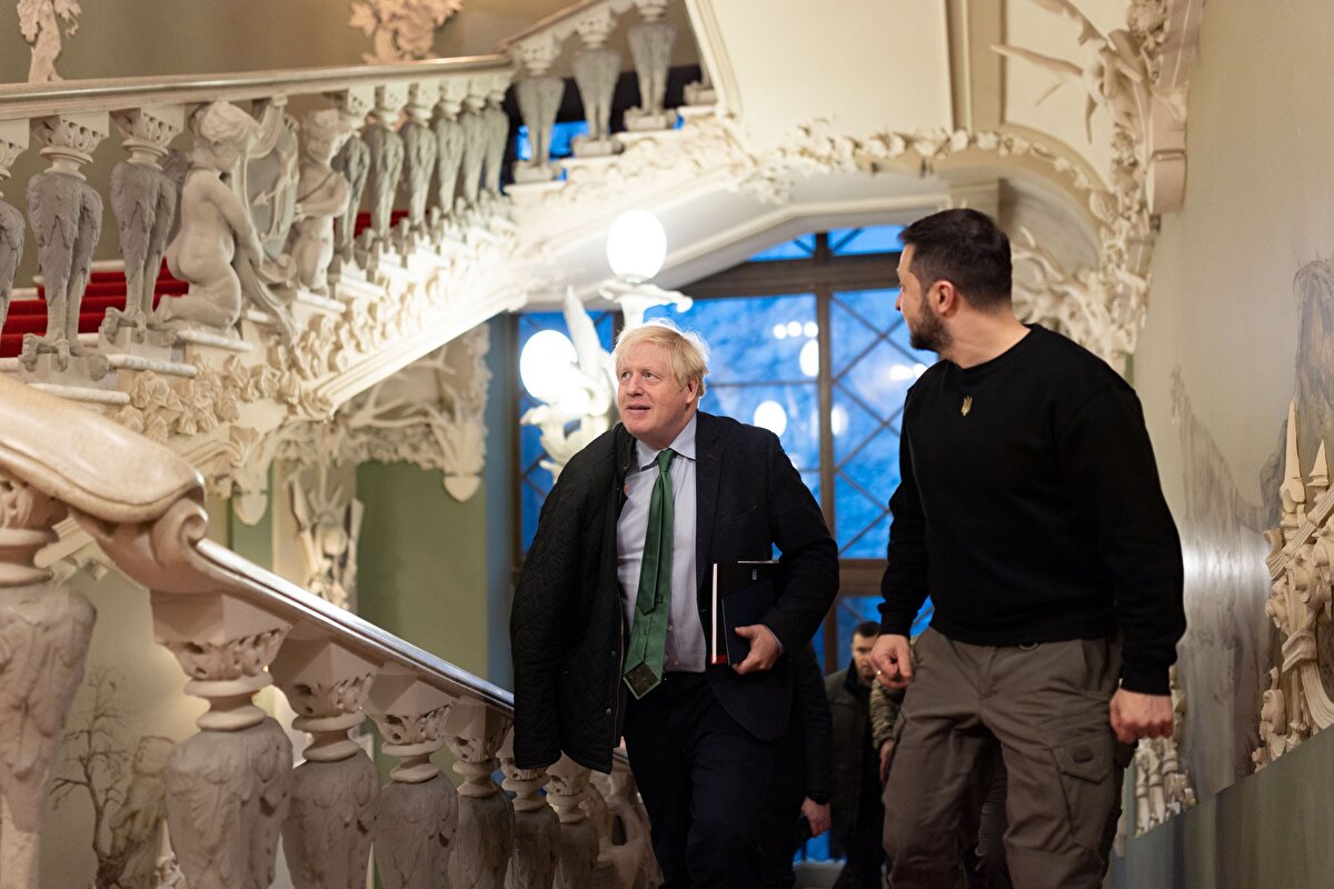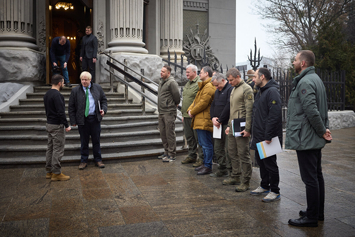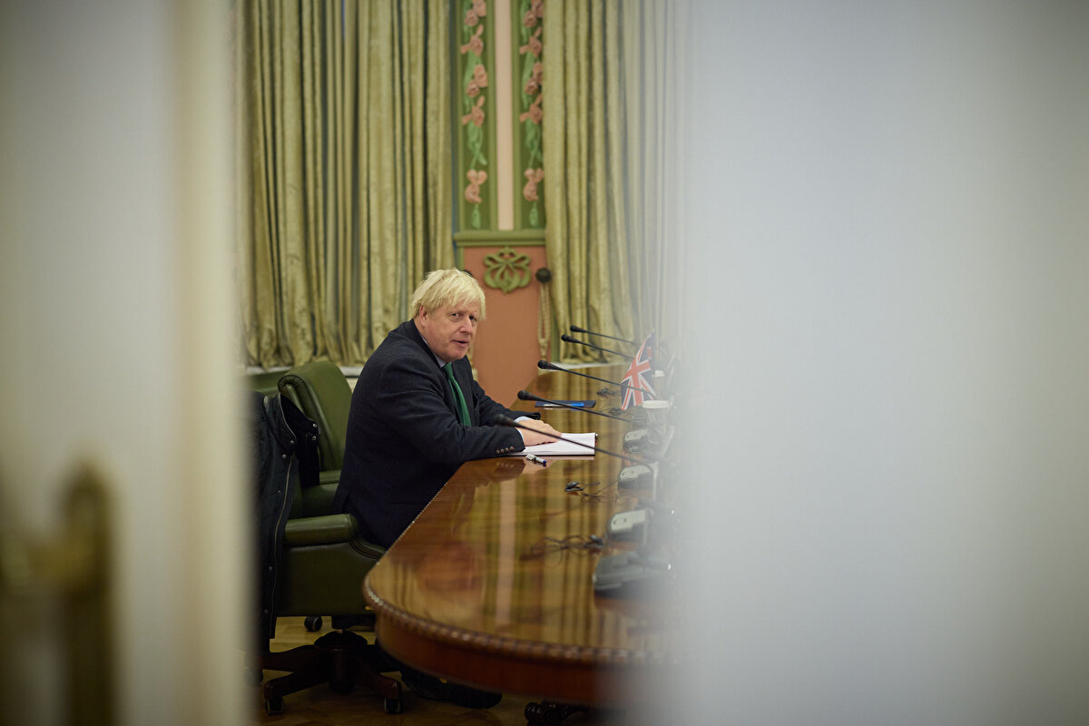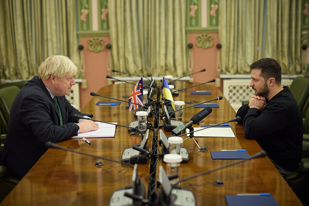 Ukrayna Devlet Başkanlığından yapılan yazılı açıklamaya göre, Zelenski, Kiev'i ziyaret eden eski İngiltere Başbakanı Boris Johnson'la basına kapalı toplantıda bir araya geldi.