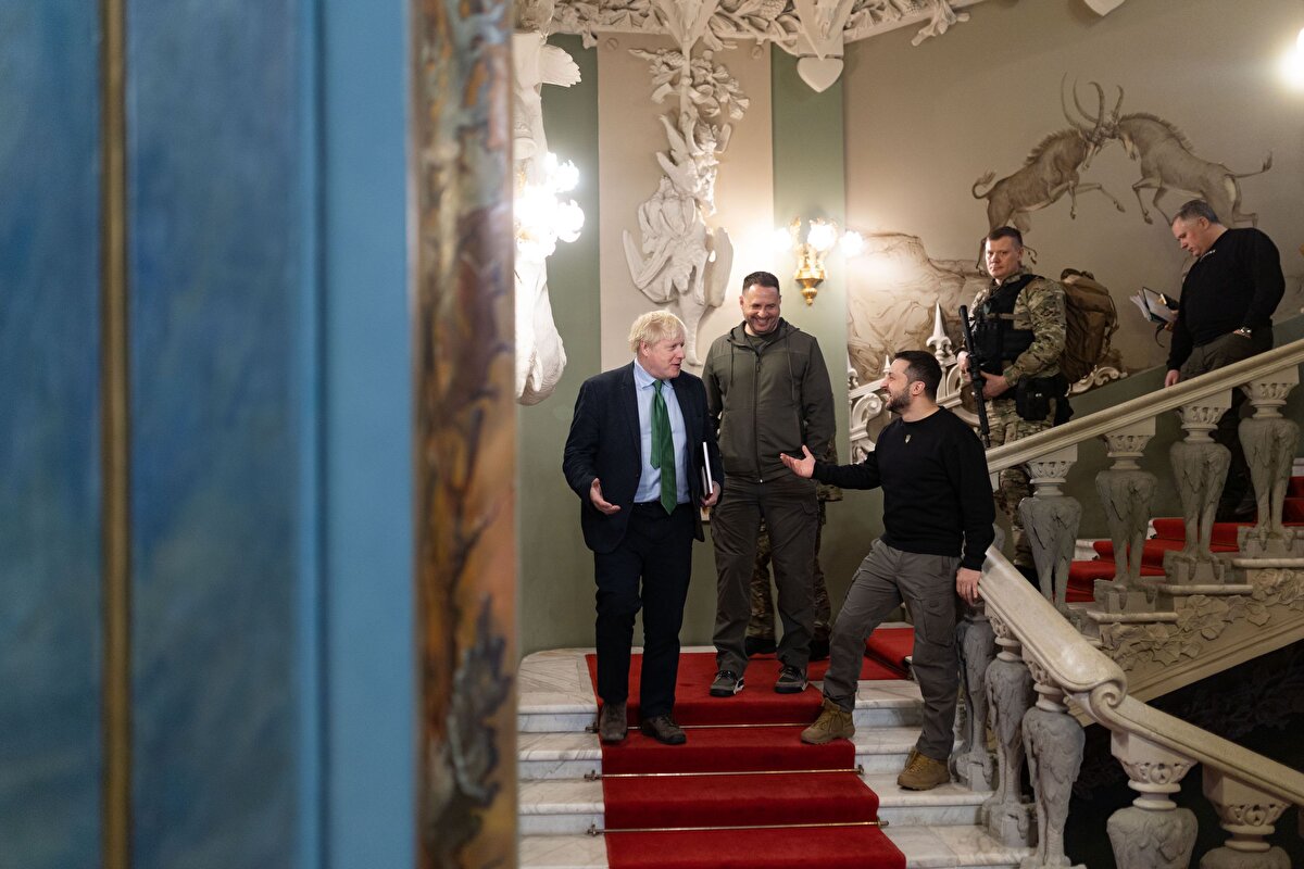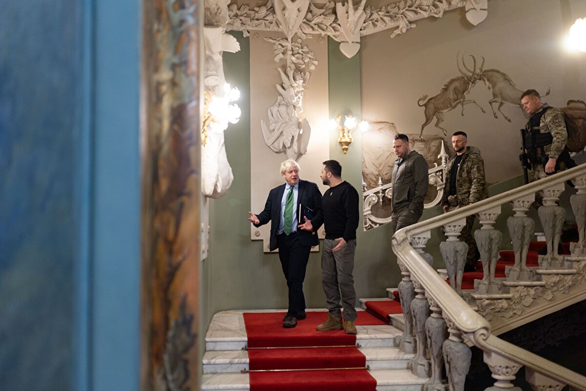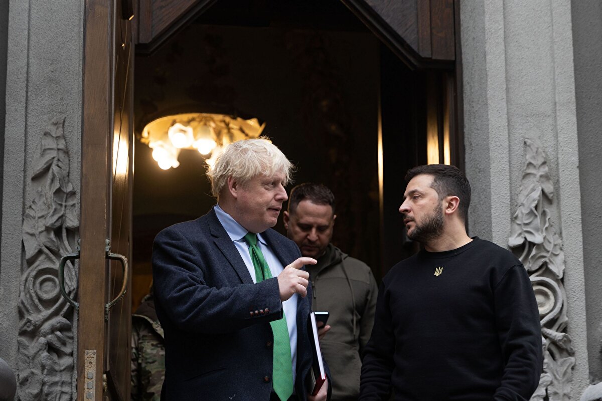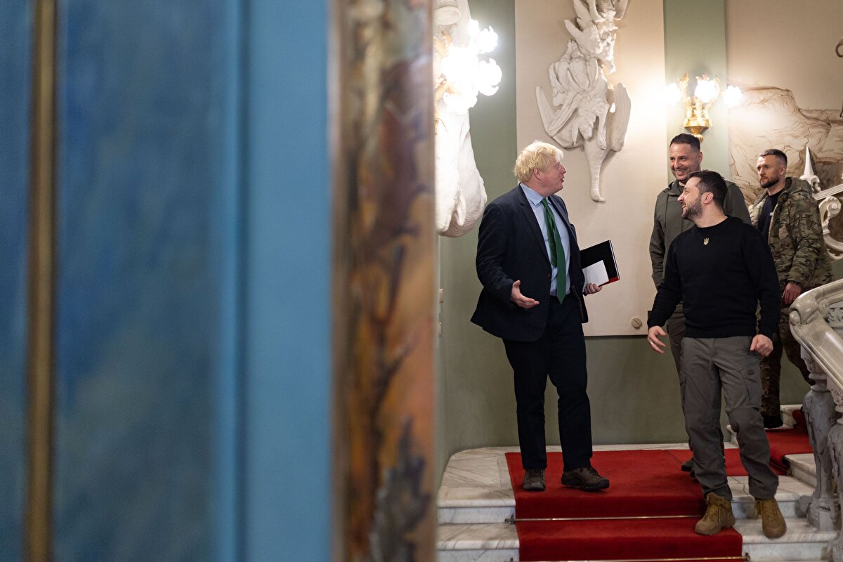 Ukrayna Devlet Başkanlığından yapılan yazılı açıklamaya göre, Zelenski, Kiev'i ziyaret eden eski İngiltere Başbakanı Boris Johnson'la basına kapalı toplantıda bir araya geldi.