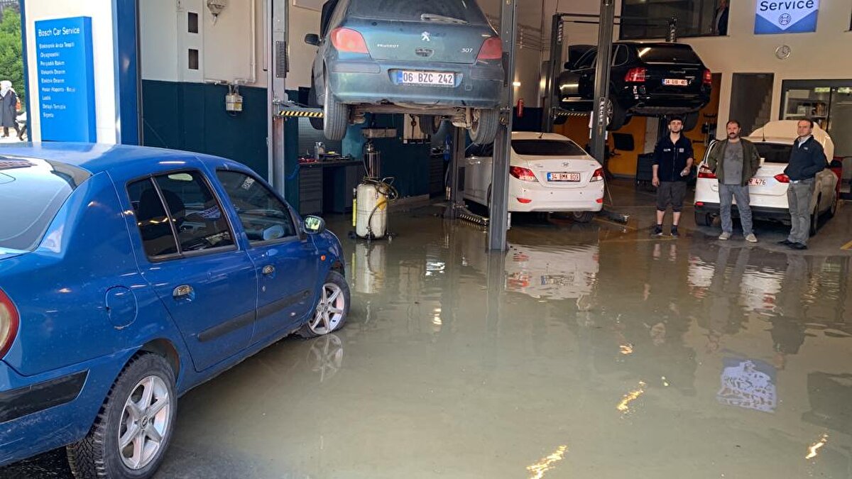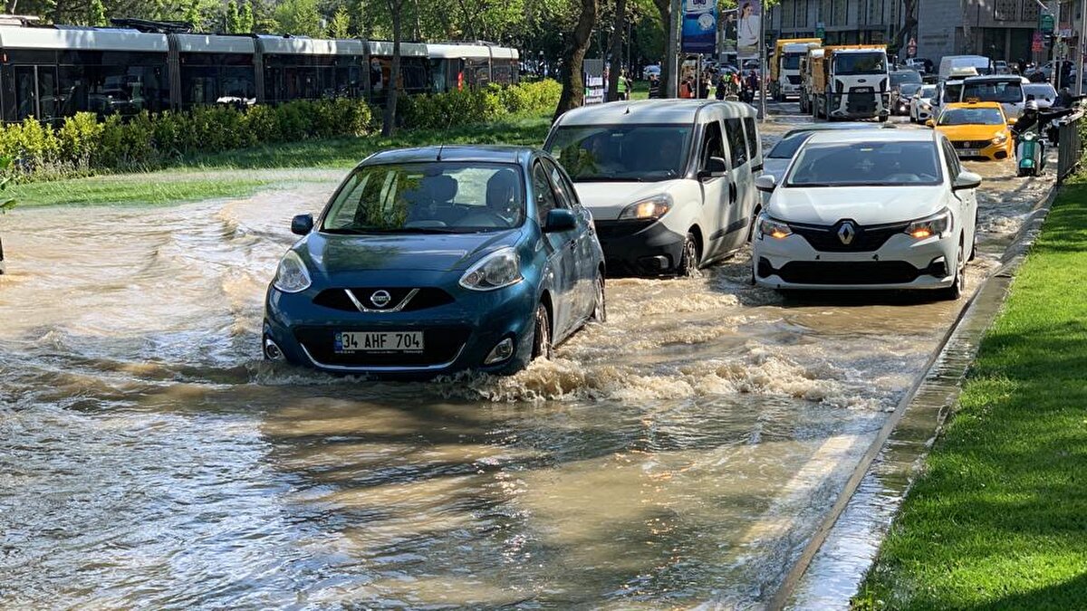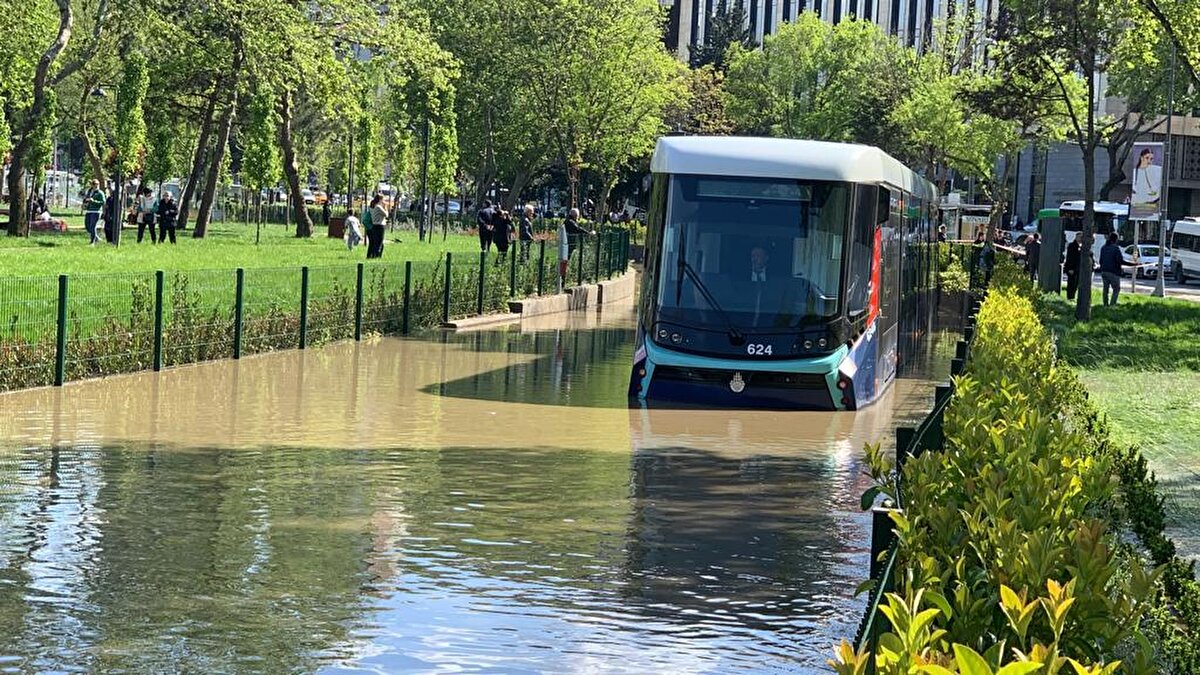 İstanbul Eyüpsultan'da su borusu patladı, iki tramvay su birikintisi nedeniyle mahsur kaldı.