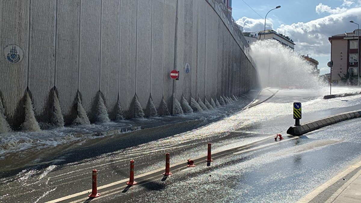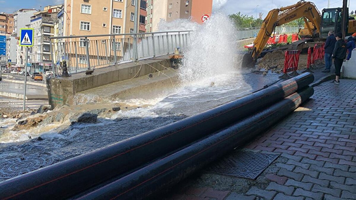 Eyüpsultan'da su borusu patladı: Tramvaylar mahsur kaldı