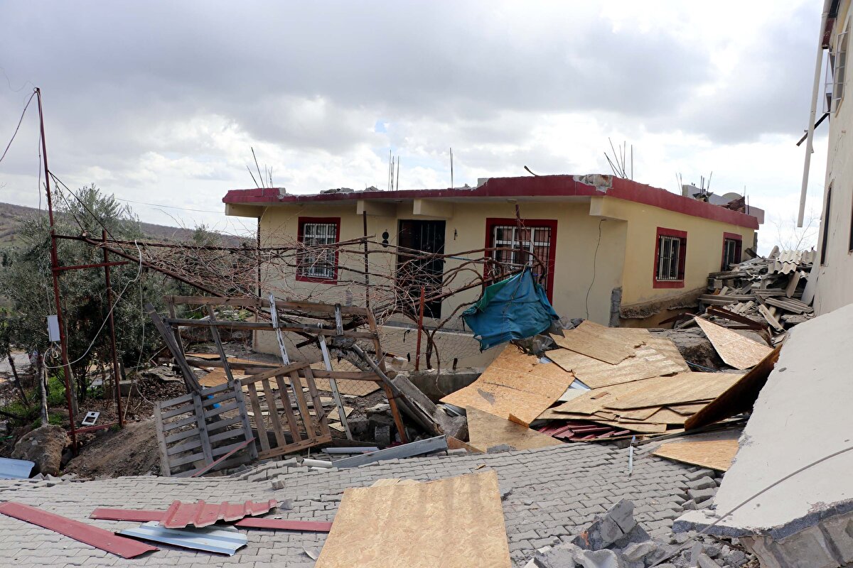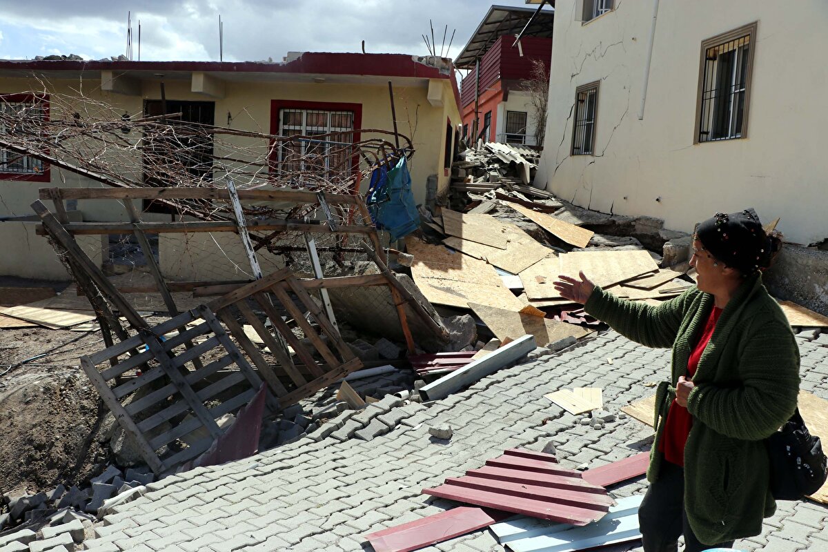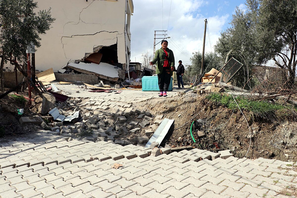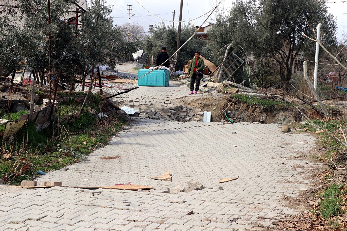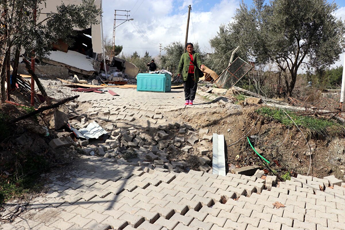 Evin zemininde de boşluklar meydana geldi. Depremde yaşadıklarını anlatan Hatice Renkliöz, "Deprem günü bir kıyametti. Ben buna 'deprem' diyemem. Çok kötüydü. Elektrikler gitti. Biz çarşıda oturuyorduk. 6 ay önce taşınmıştık. Yaşadığımız evin enkazından çıktık. Kapılar, pencereler açılmadı. Çok zor çıktık. Sonrasında buraya geldik. Burada 30 kaybımız var. Köy resmen enkaz altında. Fay hattı benim evimden geçmiş. Kayınım ve kaynanam diğer tarafta oturuyorlardı.