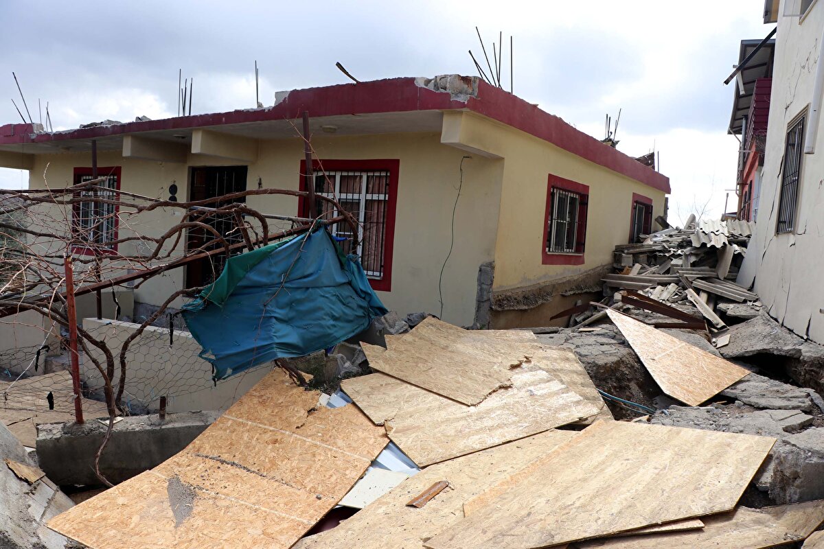 Depremde müstakil evlerinin yönünün değiştiğini söyleyen Renkliöz, "2 evin arasında sadece 1 kişinin geçebileceği kadar boşluk vardı. Deprem, evin temelinden yerini değiştirmiş. Şu an evin altında boşluk var.