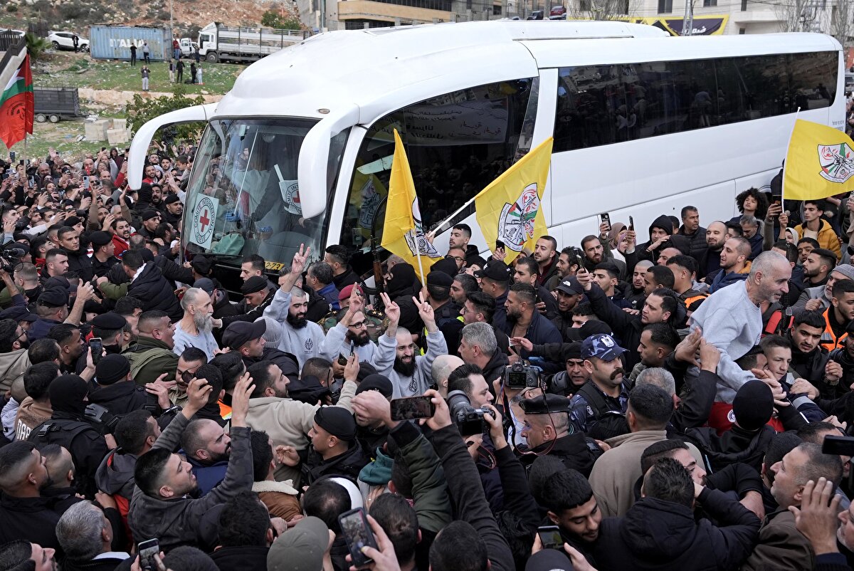 Hamas ve İsrail arasındaki esir takasının 2'nci turunda serbest bırakılan Filistinli tutsakları taşıyan Kızılhaç konvoyu, Batı Şeria'nın Ramallah kentine bağlı Beytunya beldesine ulaştı.