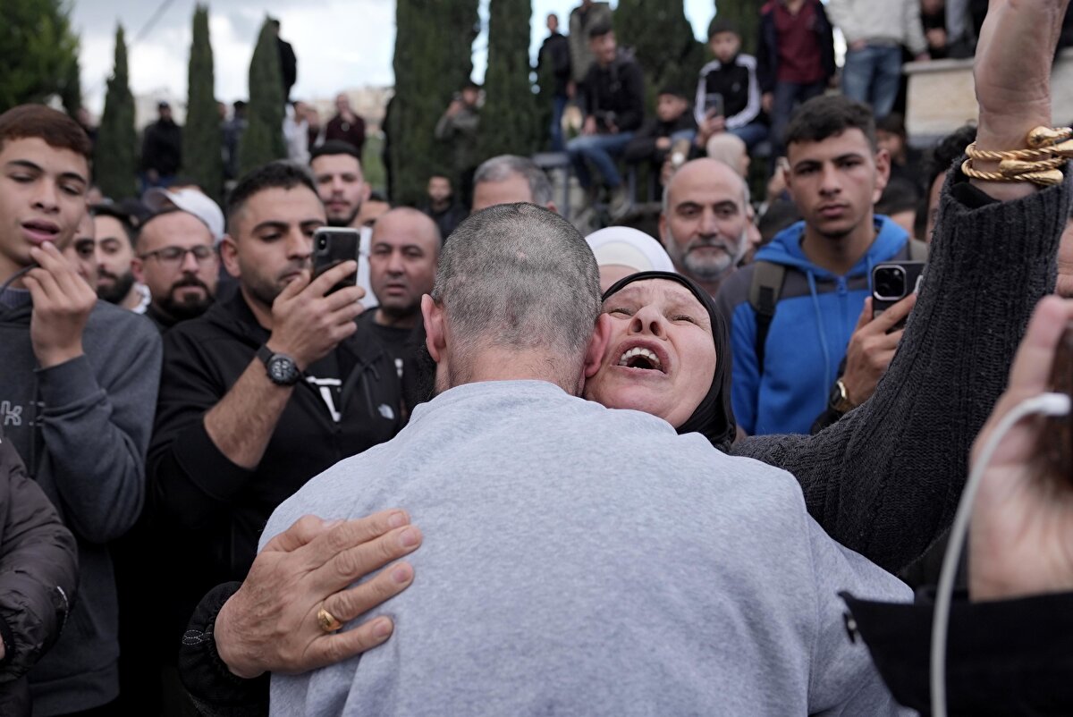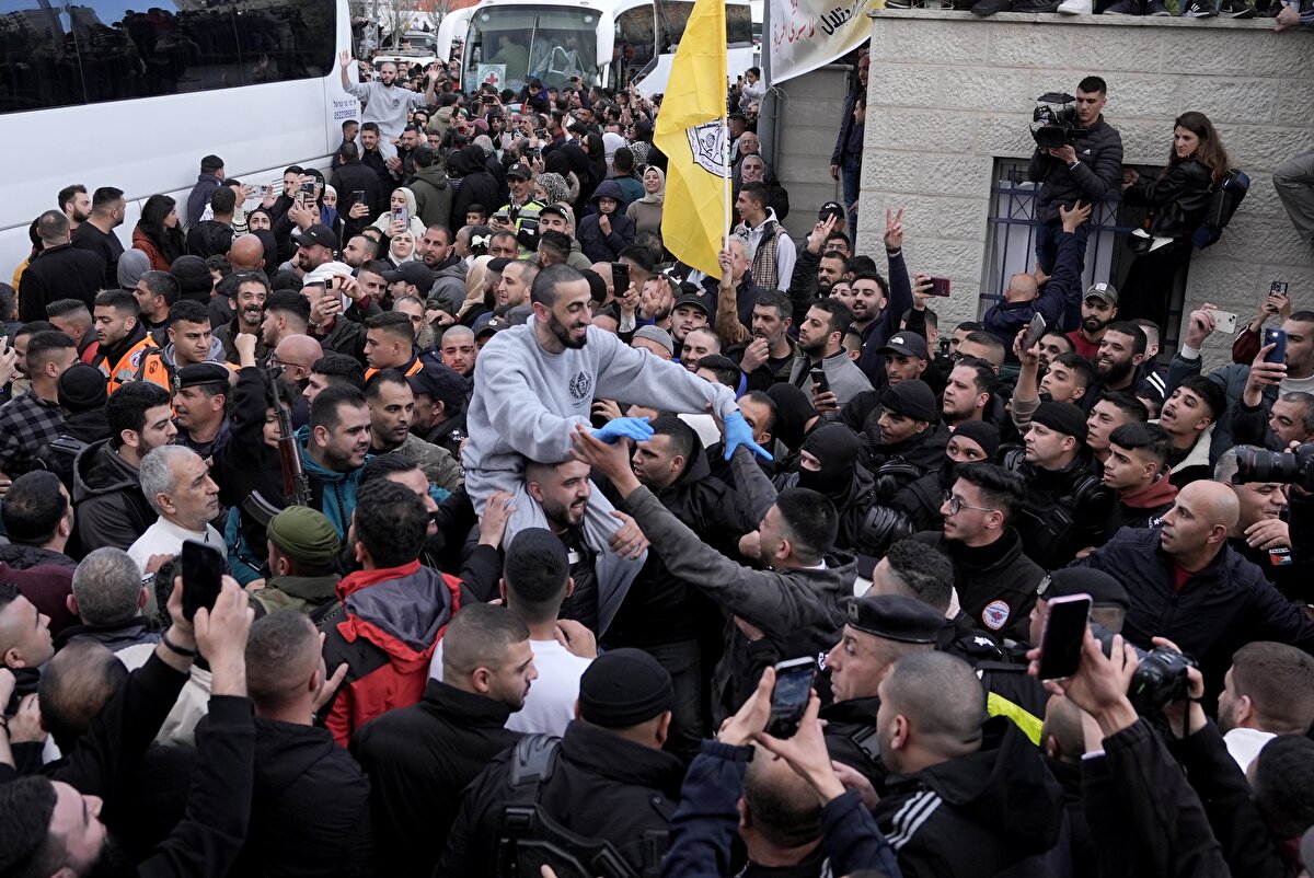 Filistinli esirler, burada yakınları tarafından coşkuyla karşılandı.