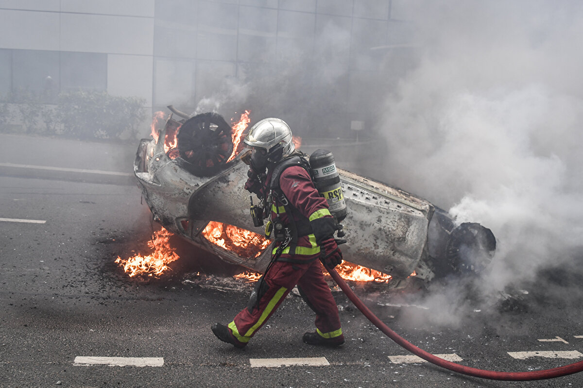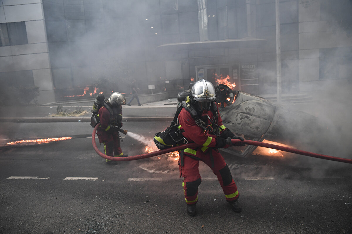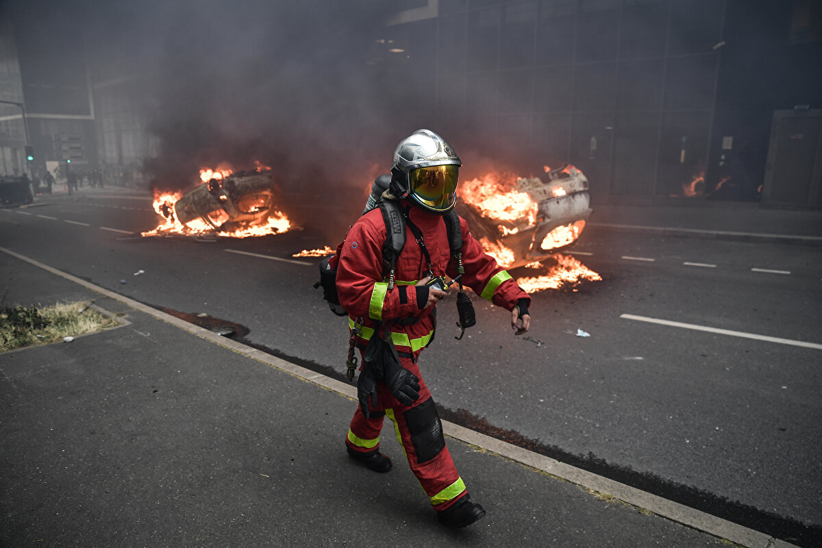 Farklı kentlerde araç, kamu eşyaları ve çöp bidonlarını ateşe veren eylemciler polise havai fişek fırlattı. Marsilya, Paris ve Lille kentlerinde ise mağazalar yağmalandı.