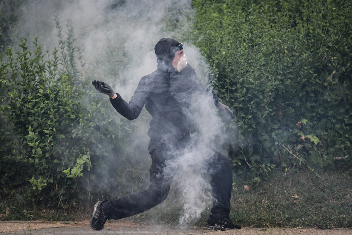 Araç, çöp bidonları ve farklı binaları ateşe veren eylemciler ile polis arasında arbede yaşanmıştı.