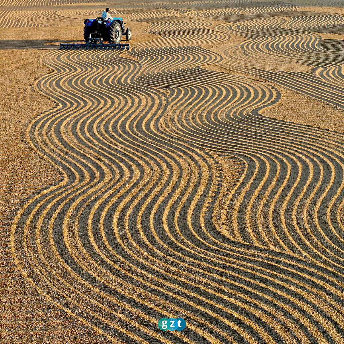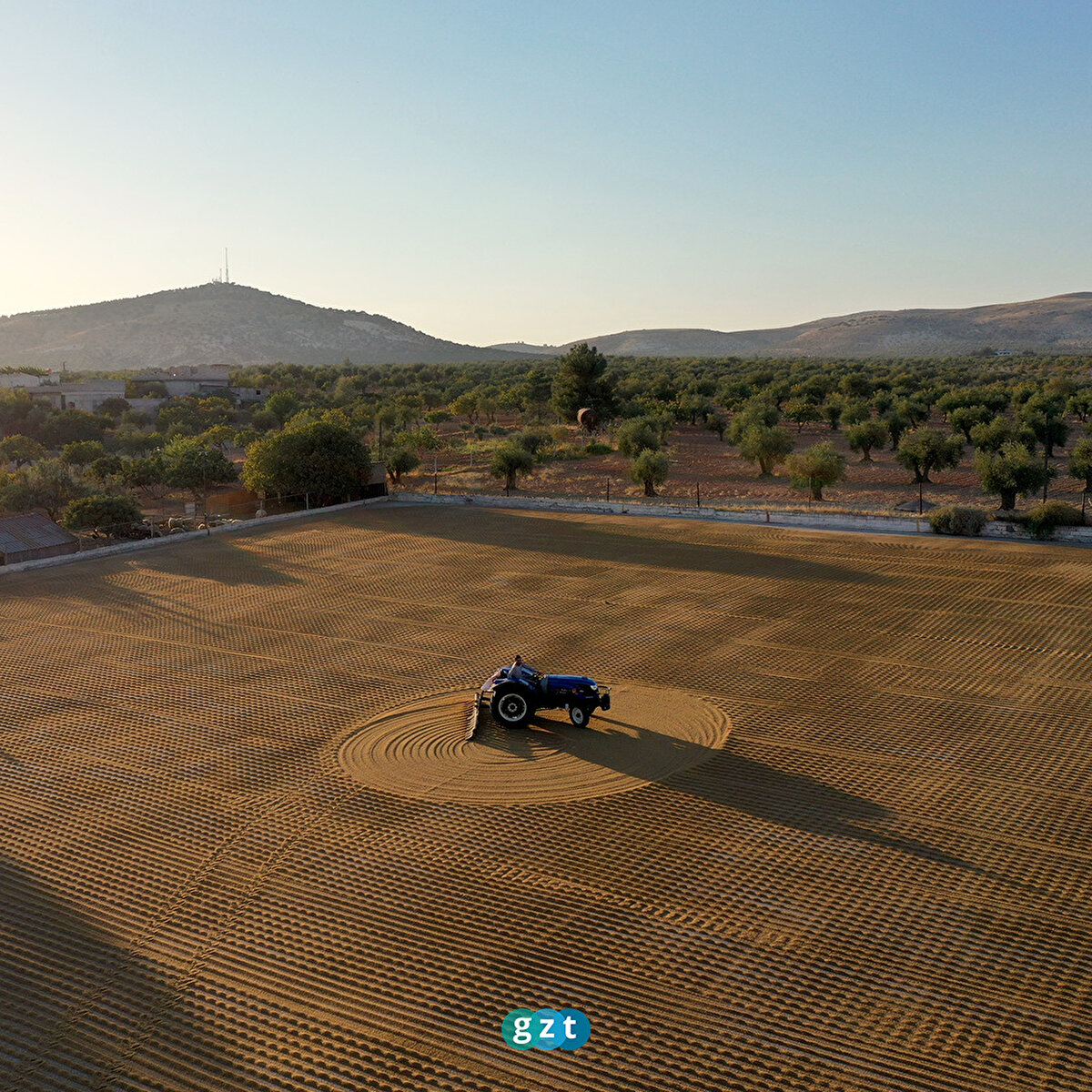 Gastronomi kenti Gaziantep'in tescilli ürünleri arasında yer alan ve fabrikalarda işlendikten sonra geleneksel yöntemlerle güneşte kurutularak elde edilen "Antep bulguru"nda bu yıl 100 bin tonun üzerinde üretim hedefleniyor. Kuruması için serilen bulgurlar, traktörlerle karıştırılırken adeta görsel şölen sunuyor.