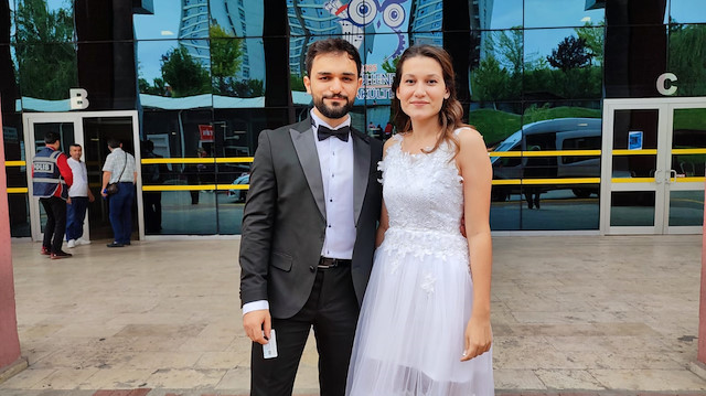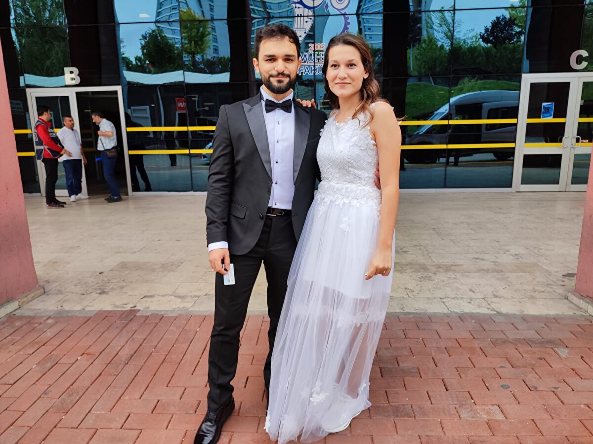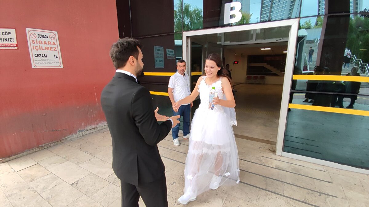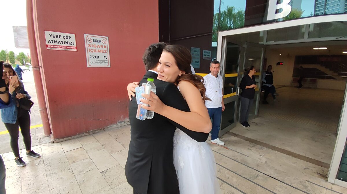Diğer adaylar da sınava gelinliği ile giren Karataş'ı tebrik etti. Damat Ali Selam ise okul kapısında sınavın bitmesini bekledi.
