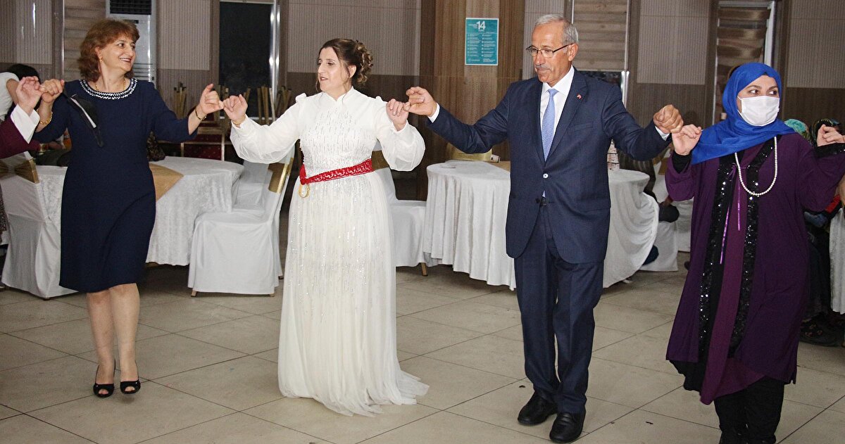 Oltu ilçesindeki Efkan Ala Kültür Merkezi'nde yapılan düğüne, Mübeccel Çakmak Aykul ve Salih Aykul çifti araç konvoylarıyla geldi. Konfetiler patlatılarak salona giren çift, ilk danslarını etti.