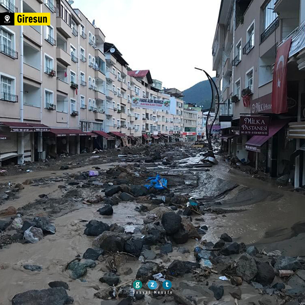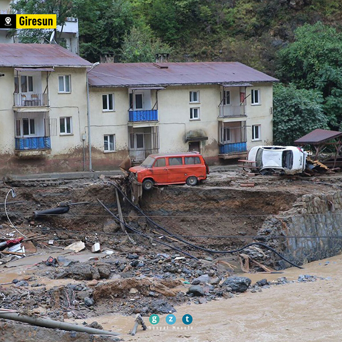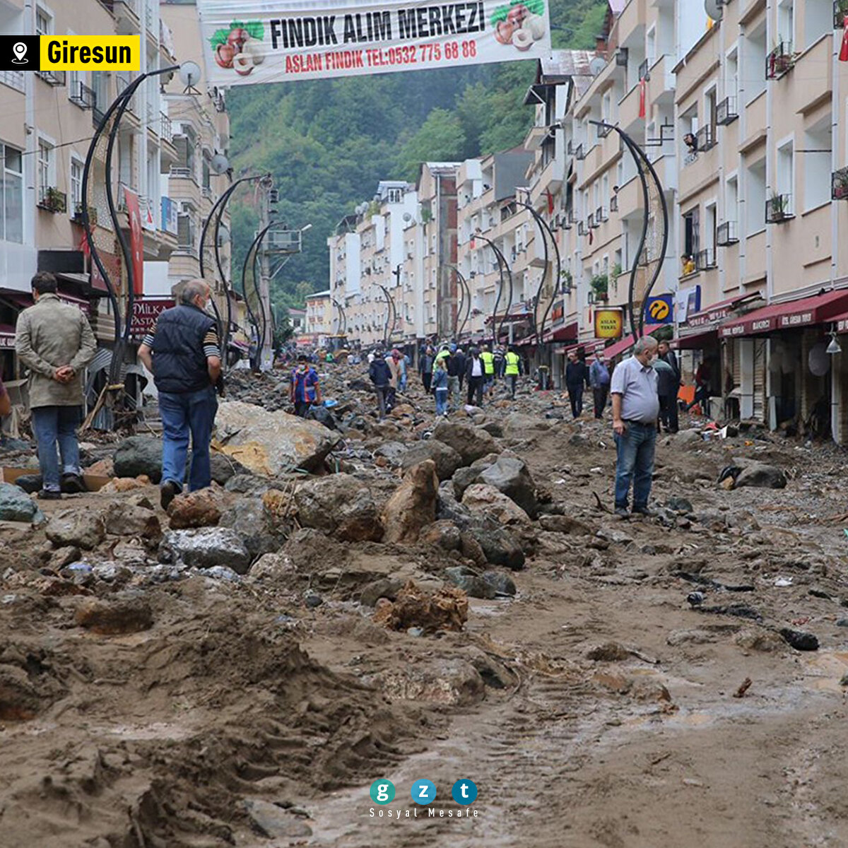 Giresun'da etkili olan sağanak yağış nedeniyle dün gece taşan Aksu Deresi, Dereli ilçesinin cadde ve sokaklarını adeta nehre çevirirken, selden geriye bu sabah araba ve çamur yığınları kaldı.