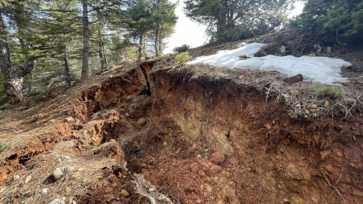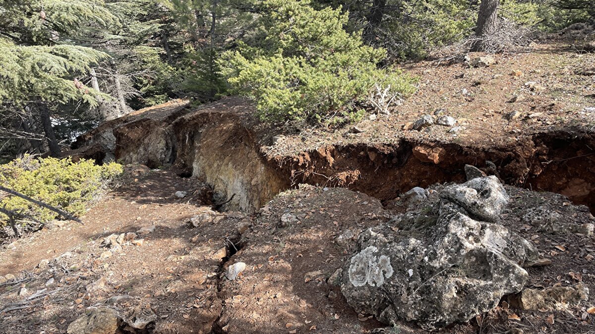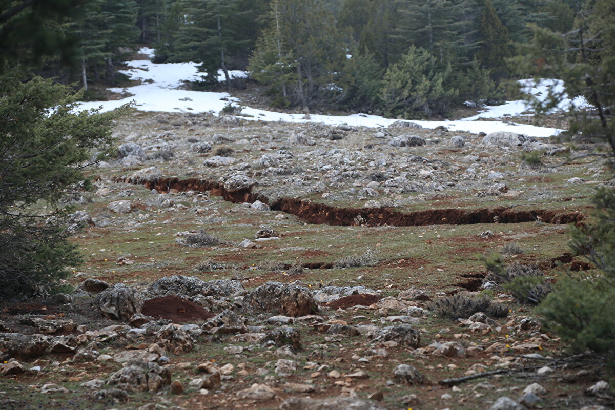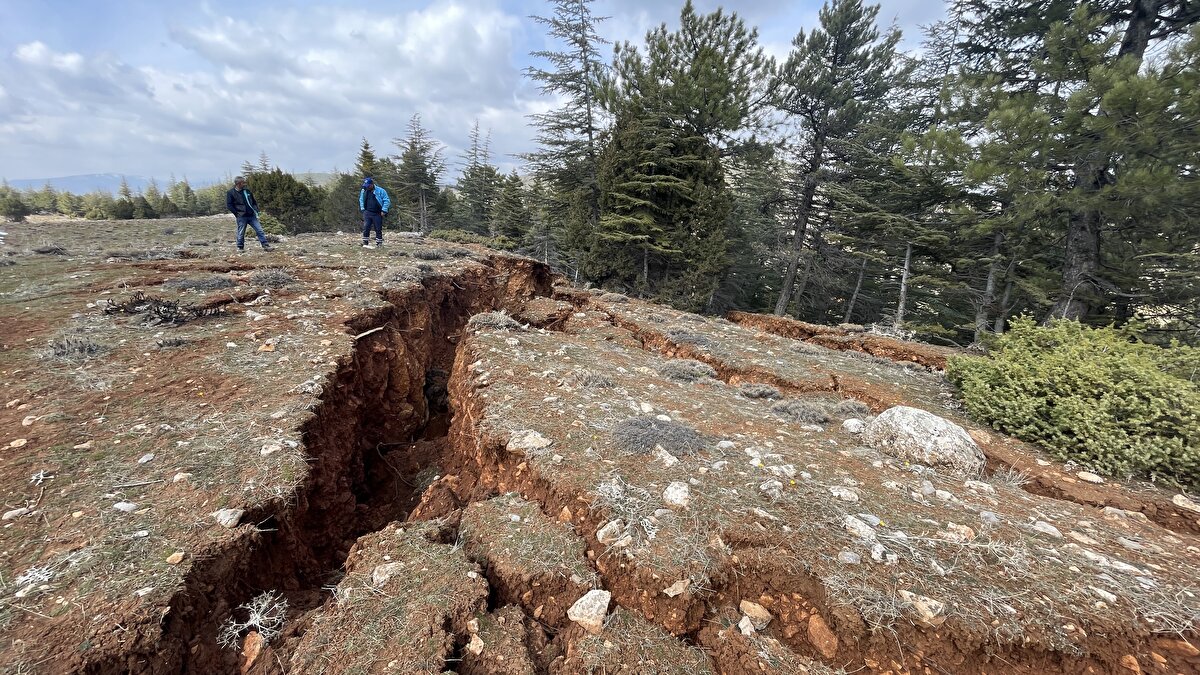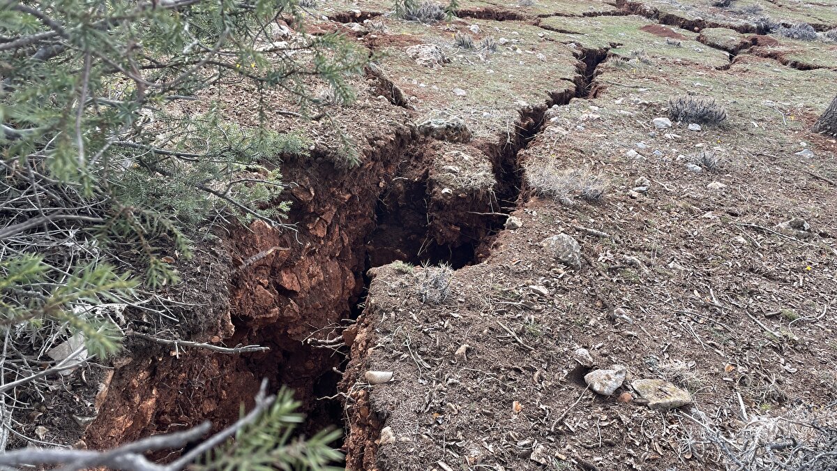 Kahramanmaraş merkezli depremlerin ardından Göksun ilçesi kırsalında derin yarıklar oluştu.