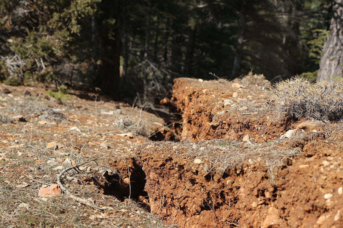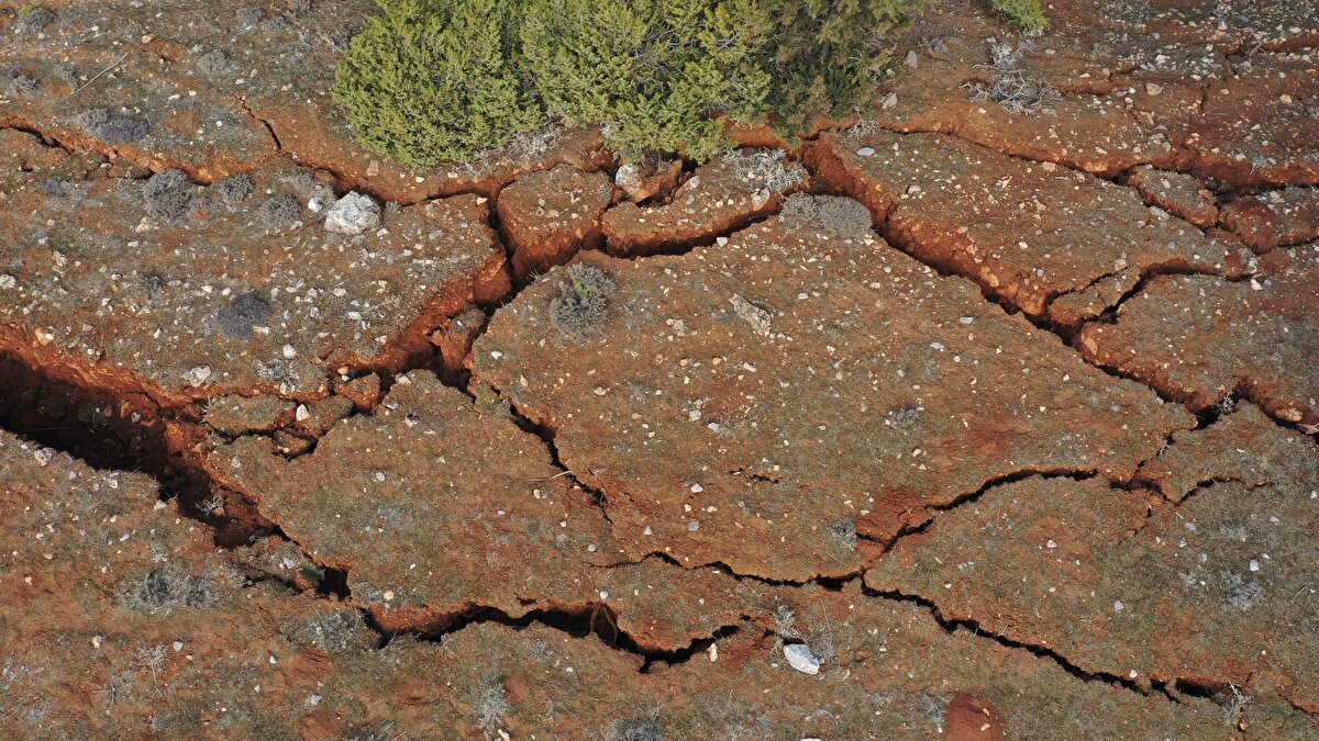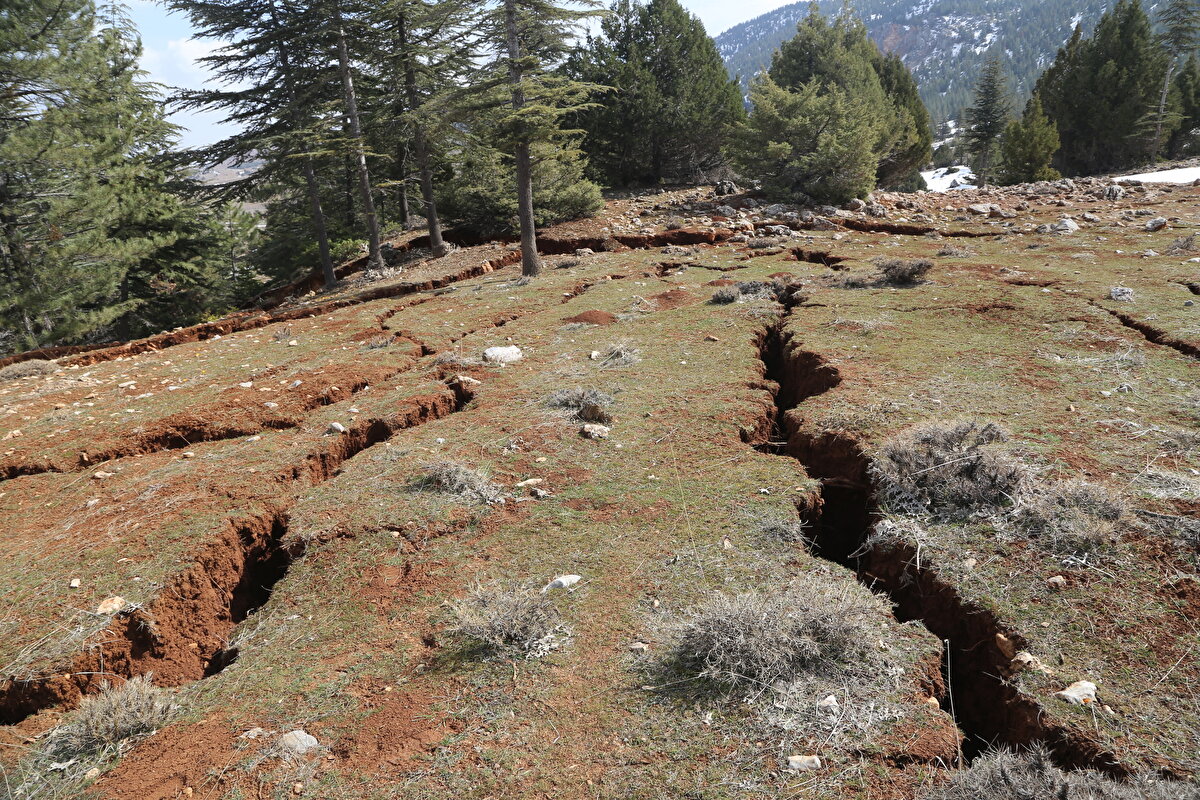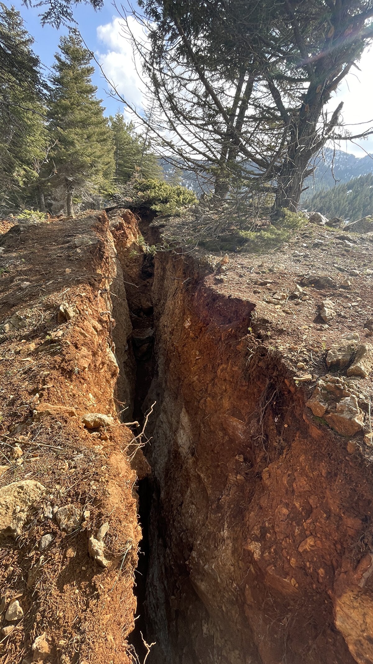 Kahramanmaraş merkezli depremlerin ardından Göksun ilçesi kırsalında derin yarıklar oluştu.