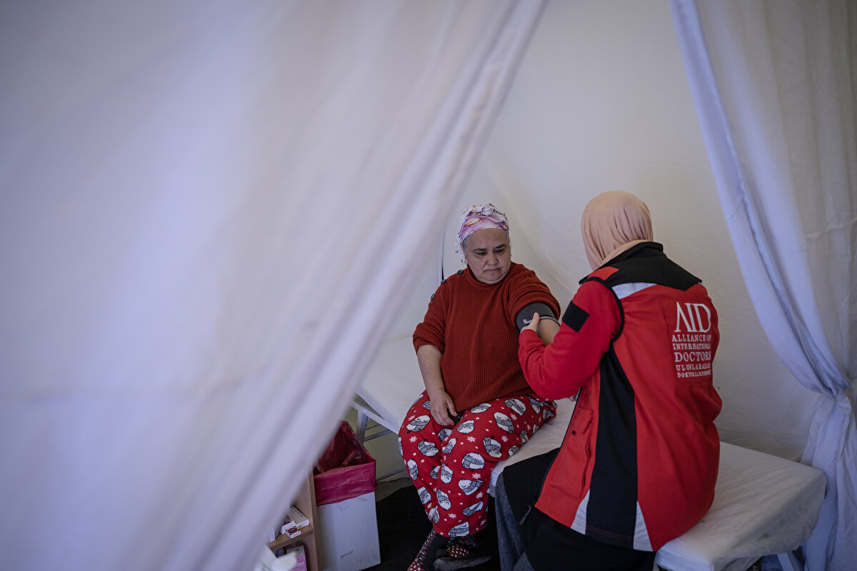 Kahramanmaraş'ta sahra çadırı kuran Uluslararası Doktorlar Derneği (AID) bünyesindeki gönüllü doktorlar, her gün çadırları tek tek dolaşarak onlarca depremzedenin yaralarını sarıyor.