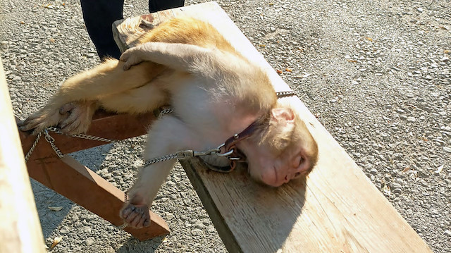 Adana'da piknik alanında yürüyüş yapanlar, bankta yatan makak maymunu buldu. Polis ekiplerince muzla beslenen ve 'çiko' ismi verilen maymun, Tarsus Hayvan Parkı'na teslim edildi.