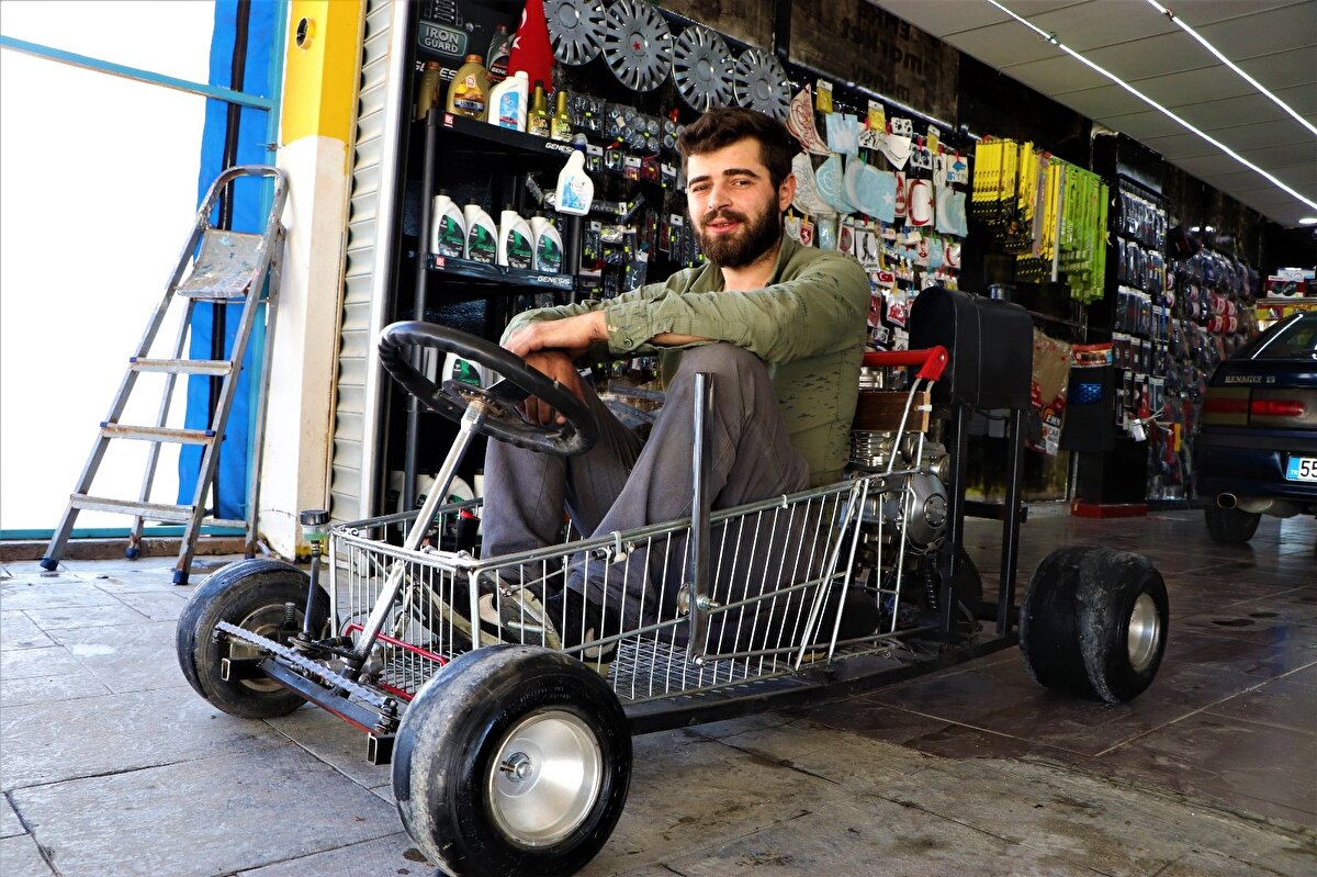 Otomobil tamircisi Ahmet Hamurcu, internette video izlerken yurt dışında kasası büyük alışveriş sepetlerinden oluşan Go-Kart araçlarına benzer bir araç yapıldığını gördü.