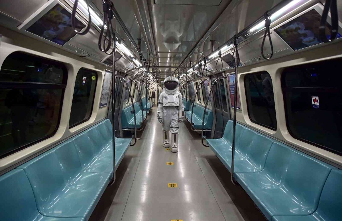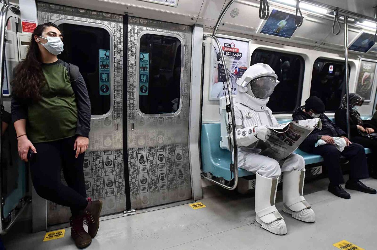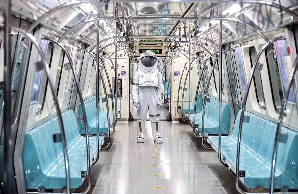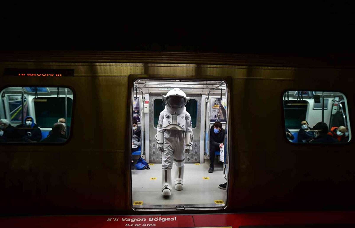 Şaşkınlığını dile getiren Uğur Saka, "İlk başta ne olduğunu anlayamadım. Metroda her zaman astronot kıyafetli birisini görmüyoruz, çok ilginç bir görüntü" ifadelerini kullandı.