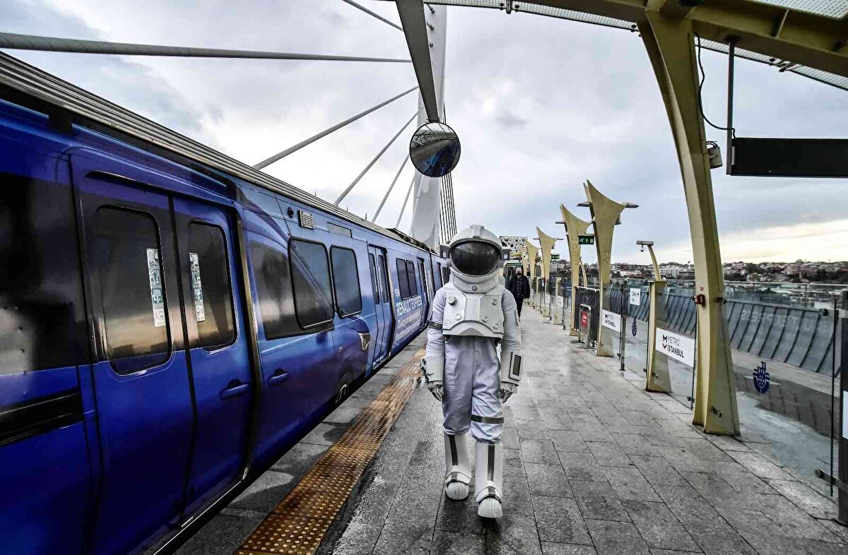 Görenler şaştı kaldı: Metroyla İstanbul turu yapan astronot