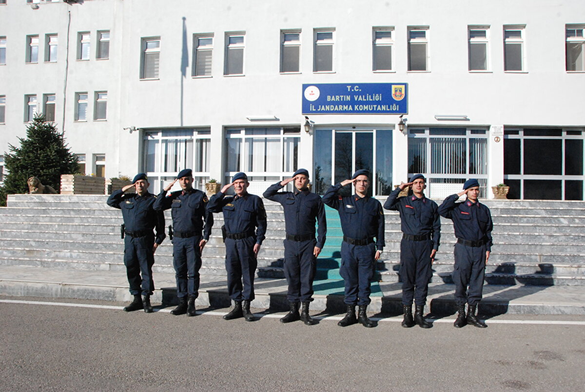 Jandarma erler Yunus Emre Sezgin ve Yusuf Eren Sezgin ile İbrahim Demir ve İsmail Demir Bartın, İl Jandarma Komutanlığı'nda görev yapıyor.
