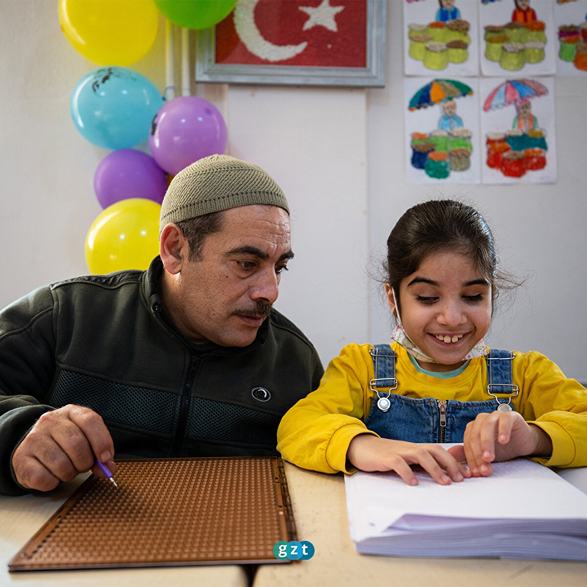 Görme engelli çocuğu olan veliler, çocuklarının ödevlerinde destek olabilmek için yıllar sonra okul sıralarına dönerek Braille alfabesi öğreniyor. Louise Braille tarafından bulunan ve 6 nokta sistemine dayanan "Braille Alfabesi", görme engellilerin dokunarak okuyup yazmasına yardımcı oluyor. Mitat Enç Görme Engelliler İlkokulunda öğrenciler, görme derecelerine ve el kaslarının gelişme durumuna göre yazıyı tablet ve daktilo üzerinde öğreniyor.