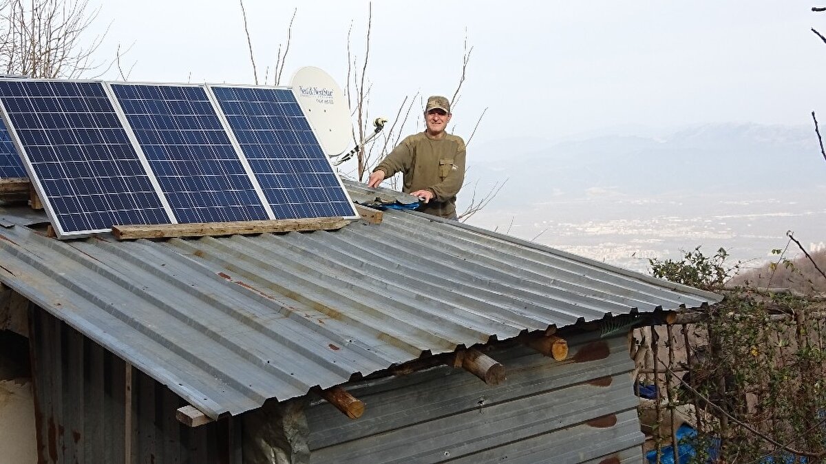 Bursa'da evinde otururken gece ışık gören vatandaşın çatısına gökten taş düştü.