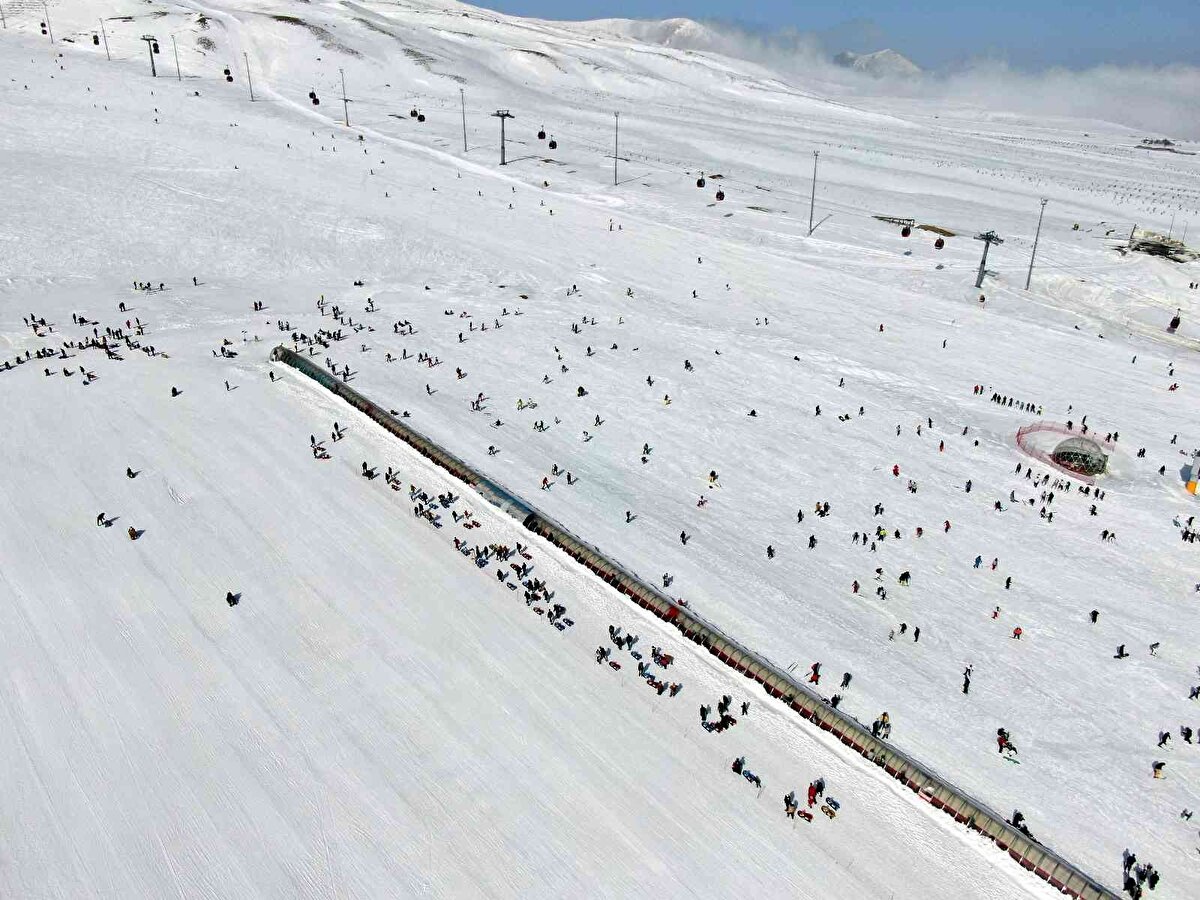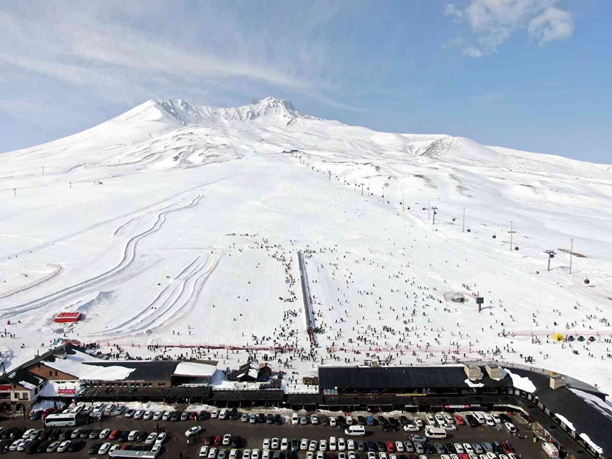 Türkiye'nin önemli kayak merkezlerinden olan Erciyes'te hafta sonu ziyaretçi yoğunluğu yaşandı.